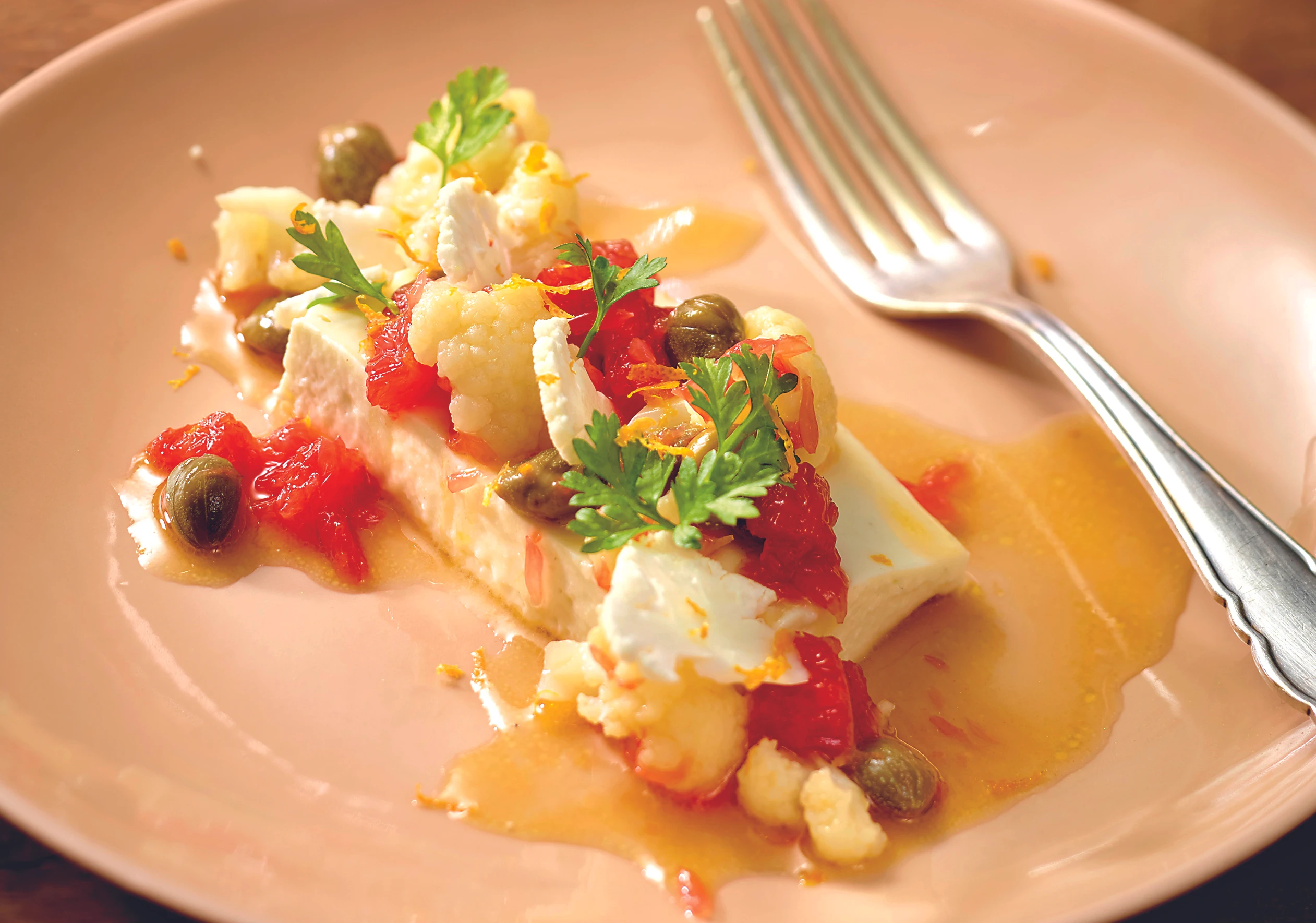 Karfiolmousse mit Blutorangen-Vinaigrette