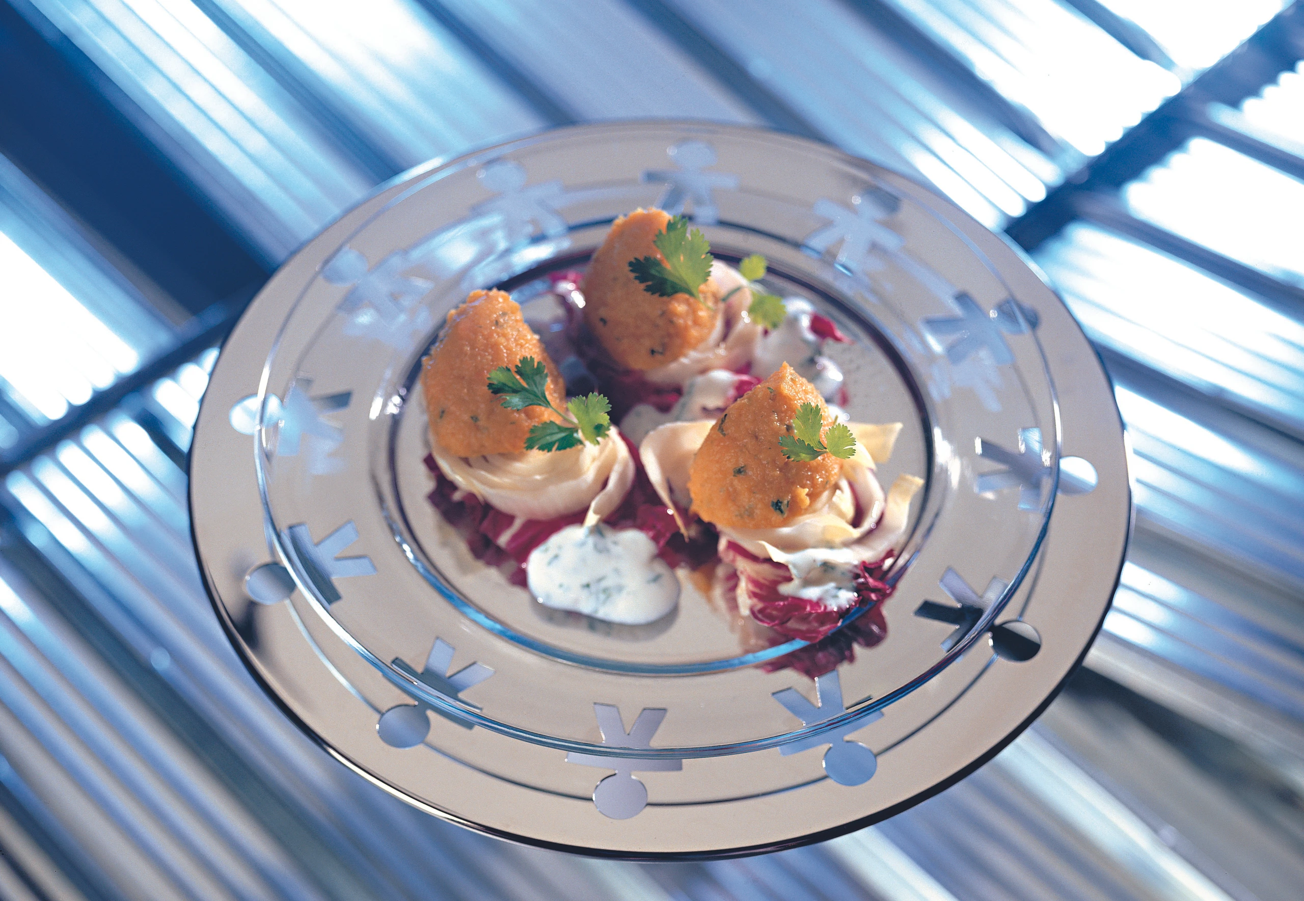 Aus dem Mus gleich große Nockerl ausstechen (Löffel zwischendurch immer wieder in heißes Wasser tauchen). Nockerl mit dem Herbstsalat anrichten und eventuell mit frischen Kräuterblättchen garnieren.