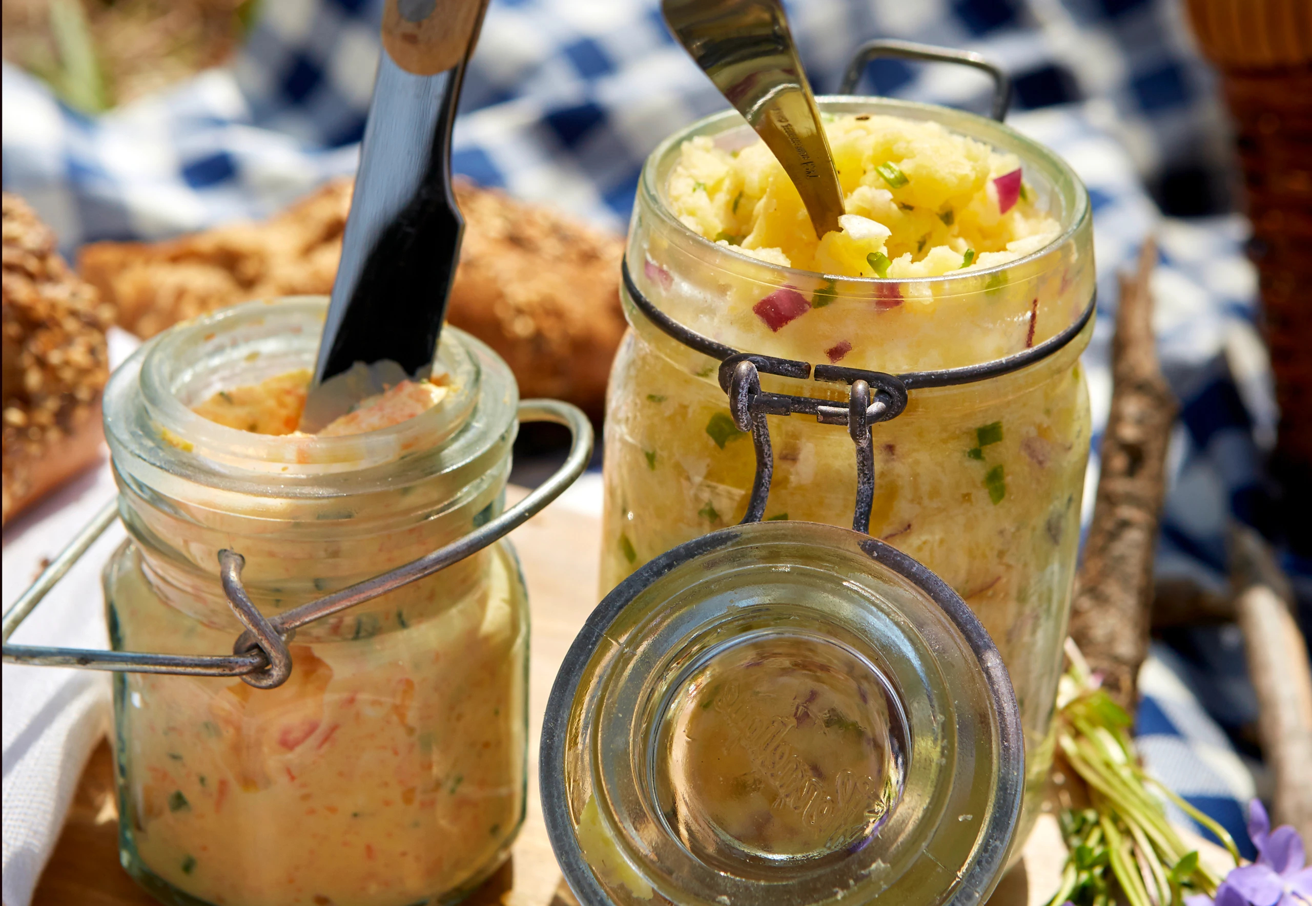 Schnittlauch fein schneiden und in den Aufstrich rühren. Aufstrich salzen, pfeffern, in Schraubgläser füllen und kühl stellen.