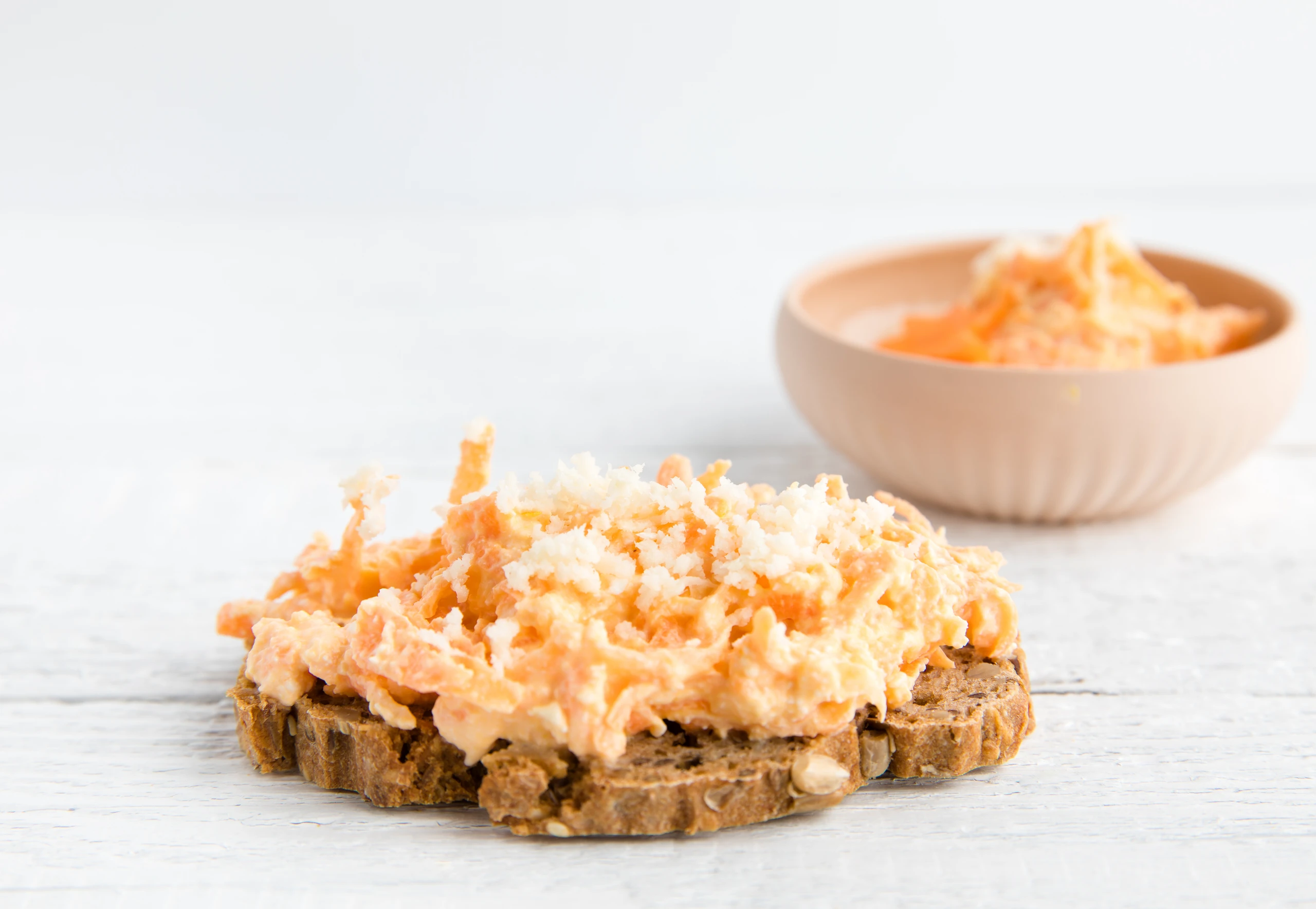 Frischkäse mit Karotten, Orangensaft, Orangenschale, Kren und Schnittlauch verrühren. Aufstrich mit Salz und Pfeffer würzen.