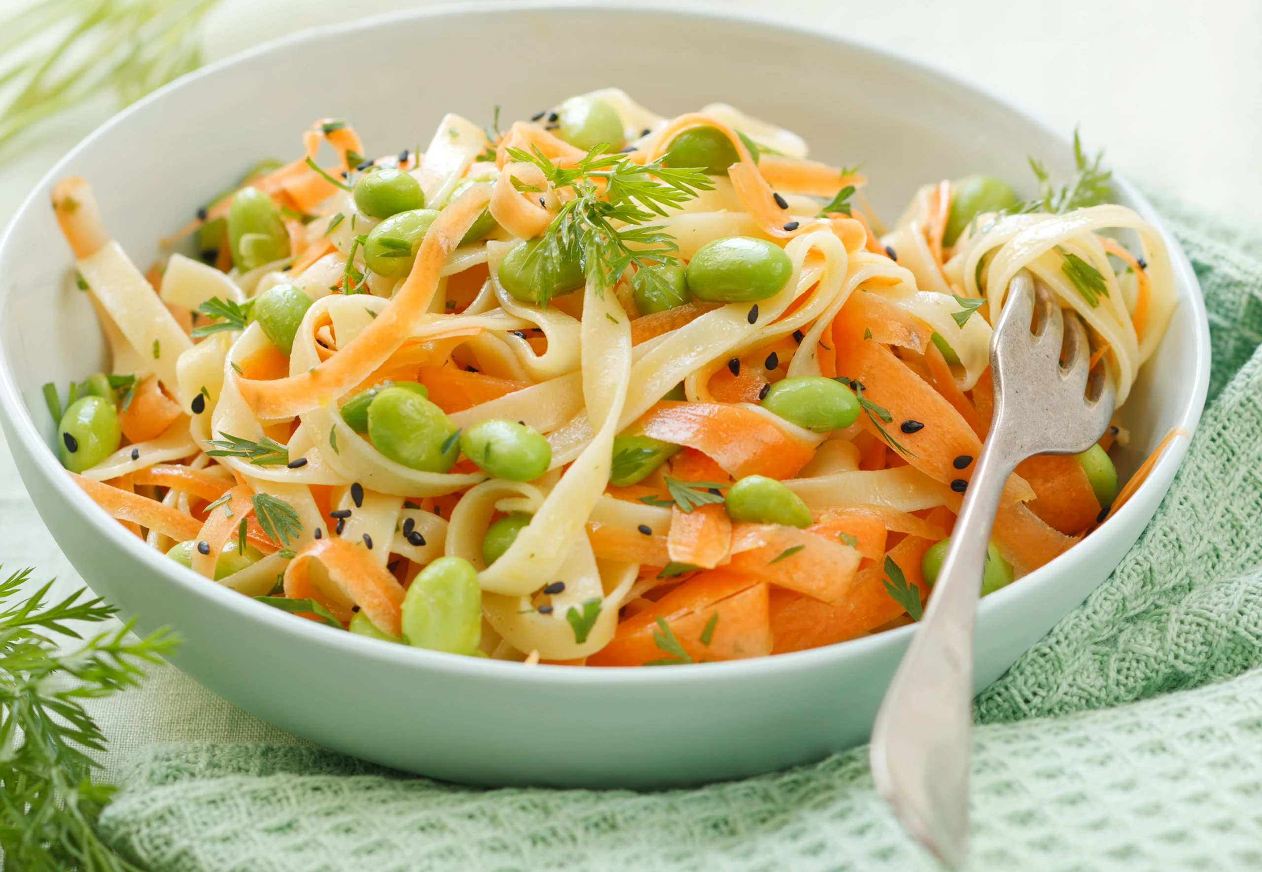 Karotten-Tagliatelle mit Sojabohnen