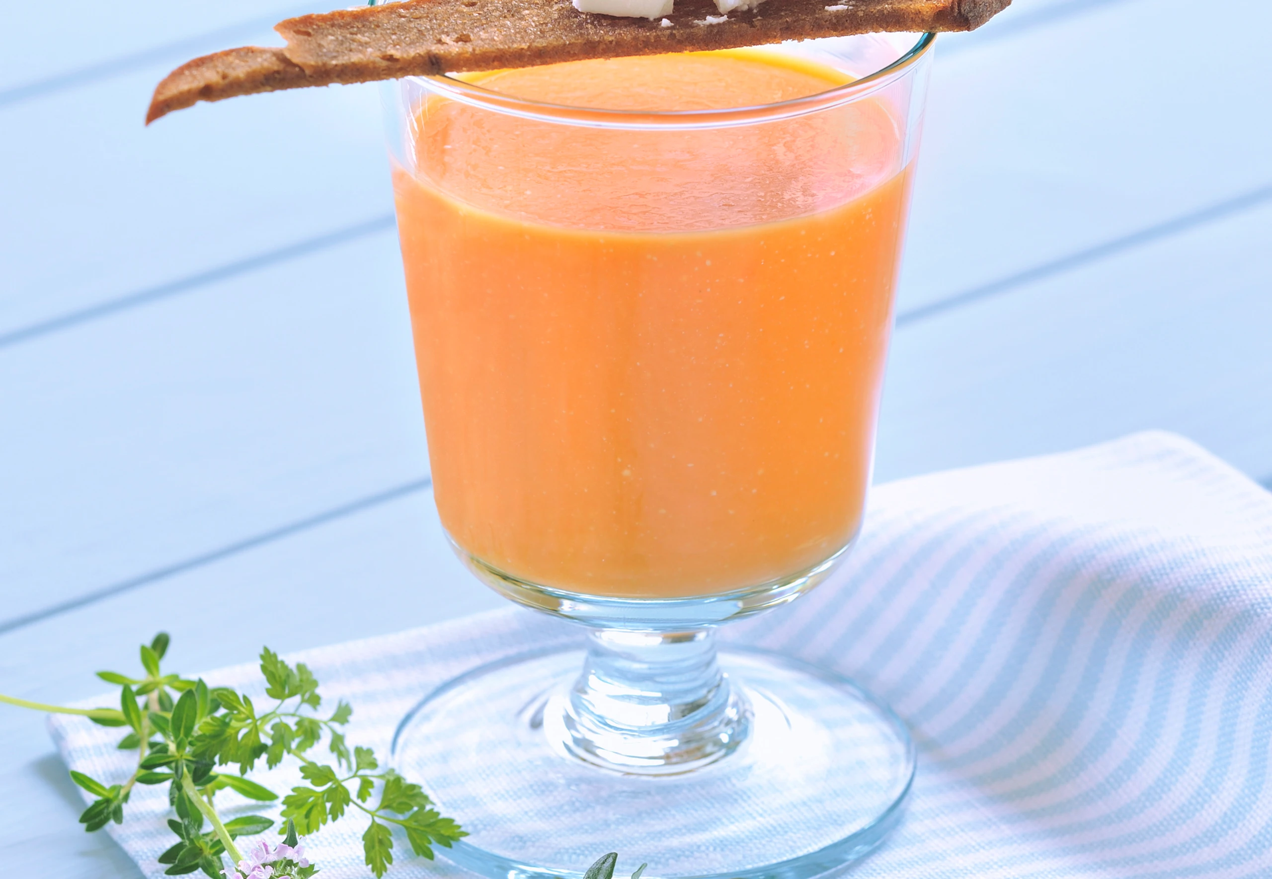 Karottendrink mit Mozzarella-Crostini