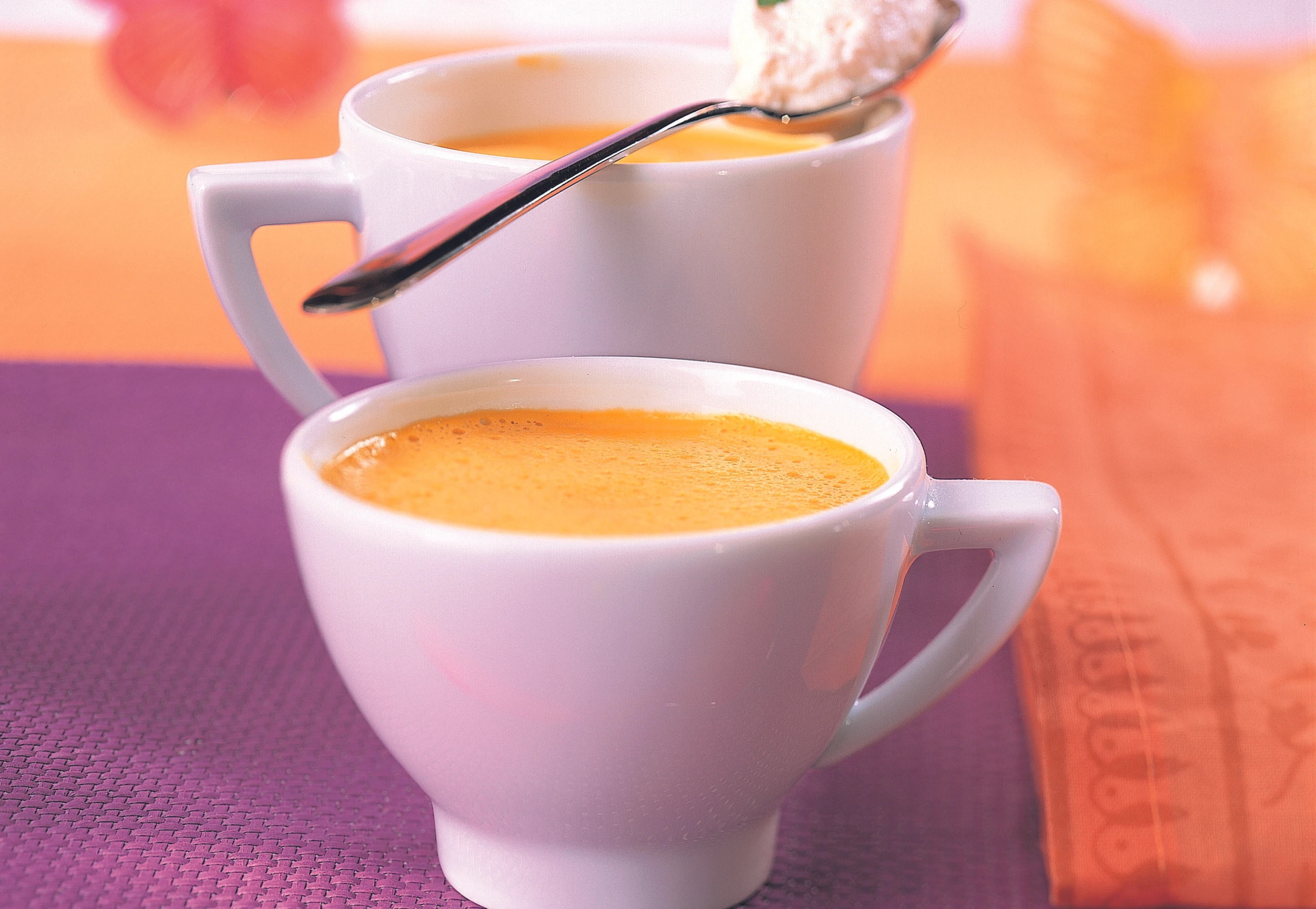 Curry einrühren, kurz mitrösten, mit Portwein ablöschen und mit Suppe und Obers aufgießen. Suppe aufkochen, salzen und köcheln, bis die Karotten gut weich sind.