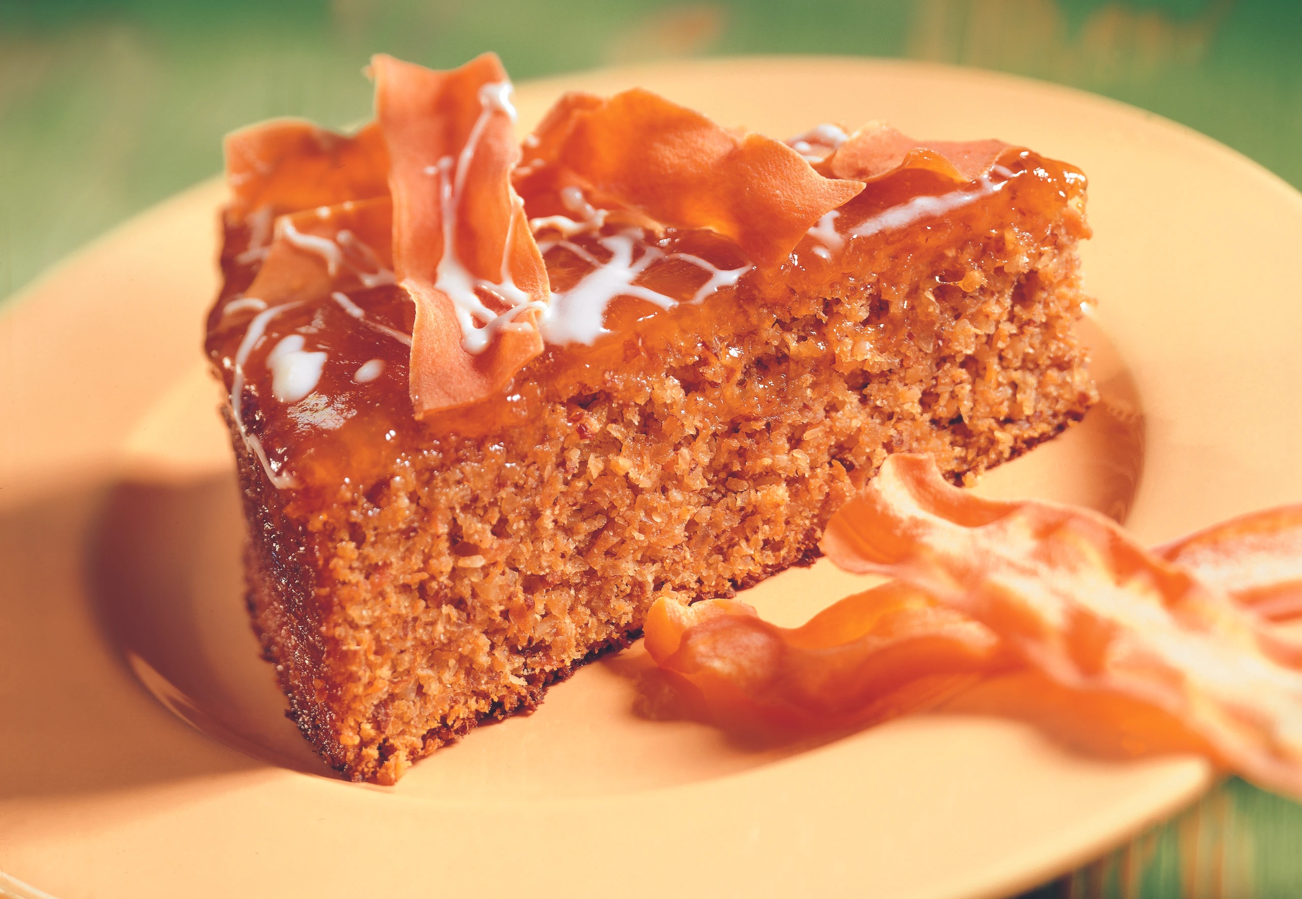 Marmelade erwärmen. Tortenrand dünn, Tortenoberfläche ca. 3 mm dick mit Marmelade bestreichen und mit den Karottenchips garnieren.