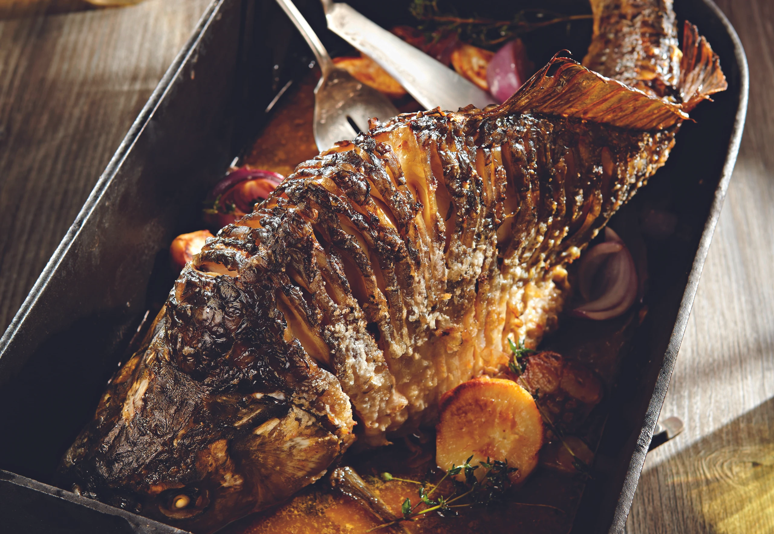 - 1 Karpfen (ca. 2 kg; geschuppt und ausgenommen)