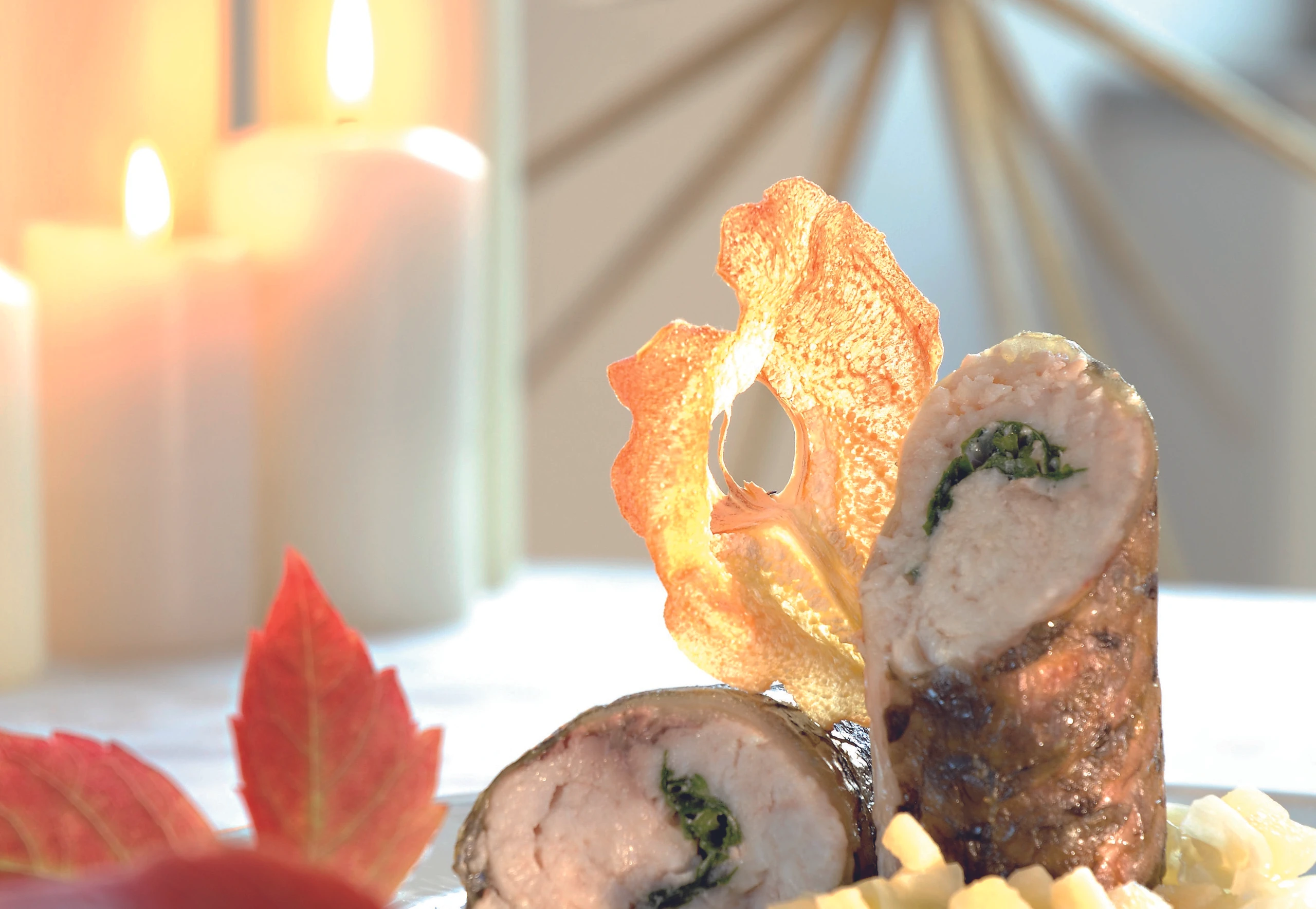 Für die Sauce Butter in einem kleinen Topf schmelzen, Mehl einrühren und aufschäumen. Wein, Suppe und Obers zugießen. Sauce ca. 4 Minuten köcheln. Petersilie einstreuen, Sauce aufkochen und mit dem Stabmixer pürieren. Karpfenrollen auswickeln, mit einem scharfen Messer vorsichtig schneiden. Mit Quittenkraut und Petersilsauce anrichten.