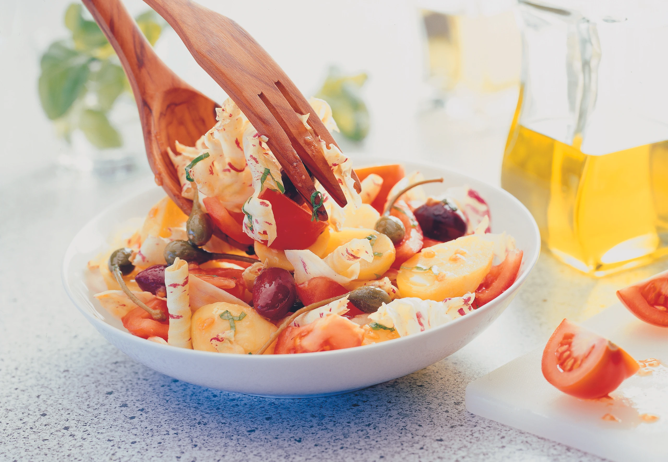 Kartoffelsalat mit Oliven und Kapernbeeren