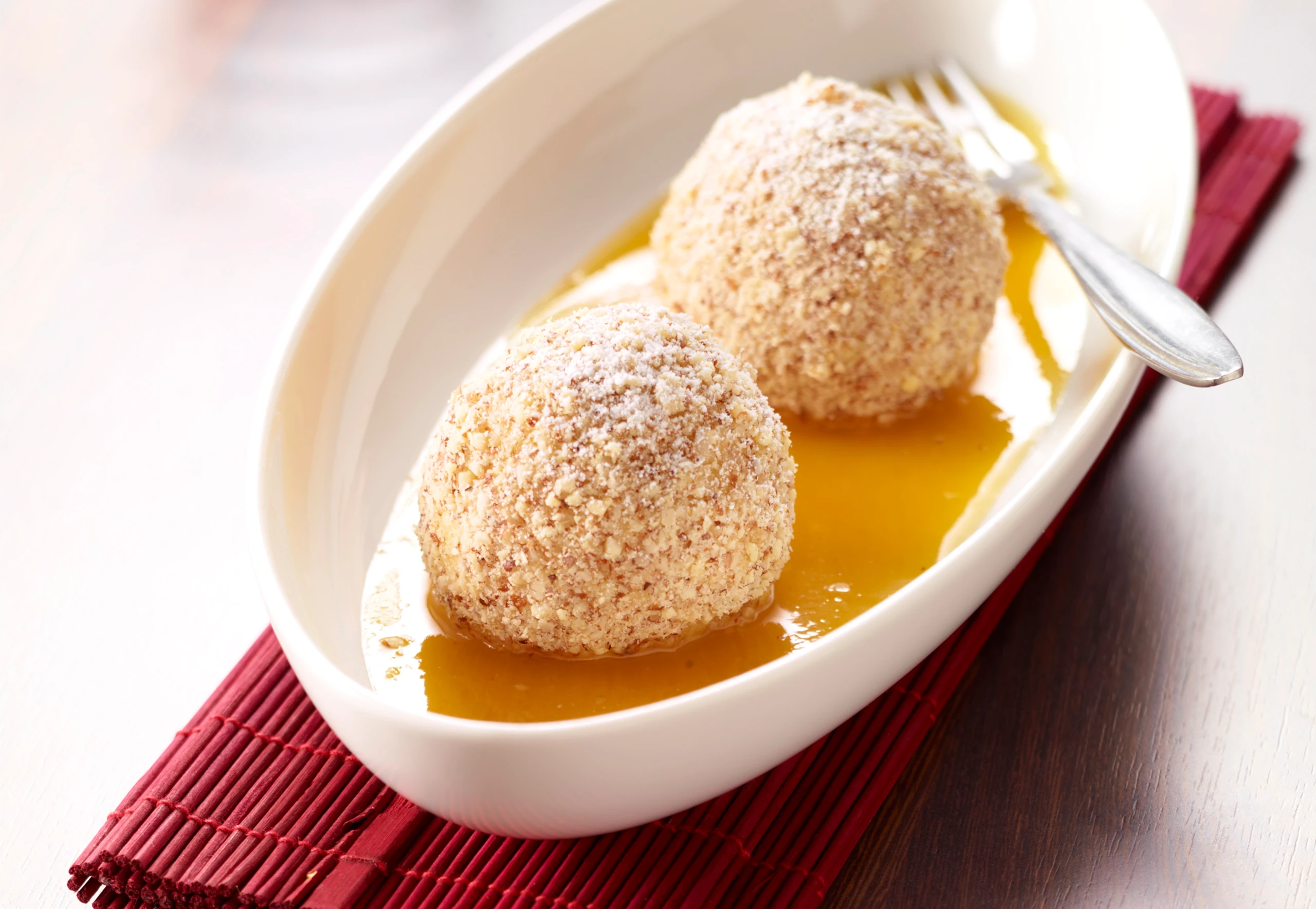 - Knödel ins kochende Wasser legen und ca. 10 Minuten köcheln. Herausheben, abtropfen lassen und in den Mandeln wälzen. Knödel mit Staubzucker bestreuen und mit der Sauce servieren. *Für ein Erdäpfelteig-Rezept folgen Sie bitte dem Link: https://www.gusto.at/rezepte/erdaepfelknoedel-apfelfuelle-butterbroesel