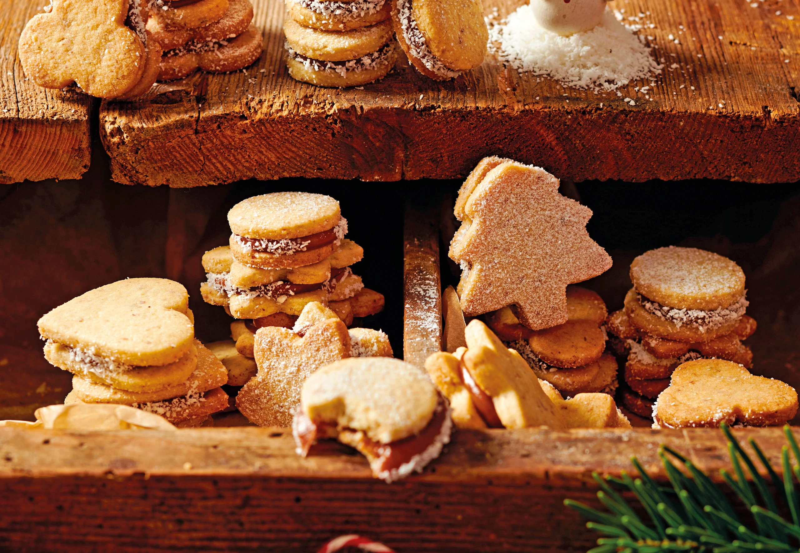 Creme auf der Hälfte der Kekse verstreichen, mit den übrigen Keksen zusammensetzen und leicht andrücken. Seitlich im Kokosette wälzen. Kekse trocken und kühl lagern.