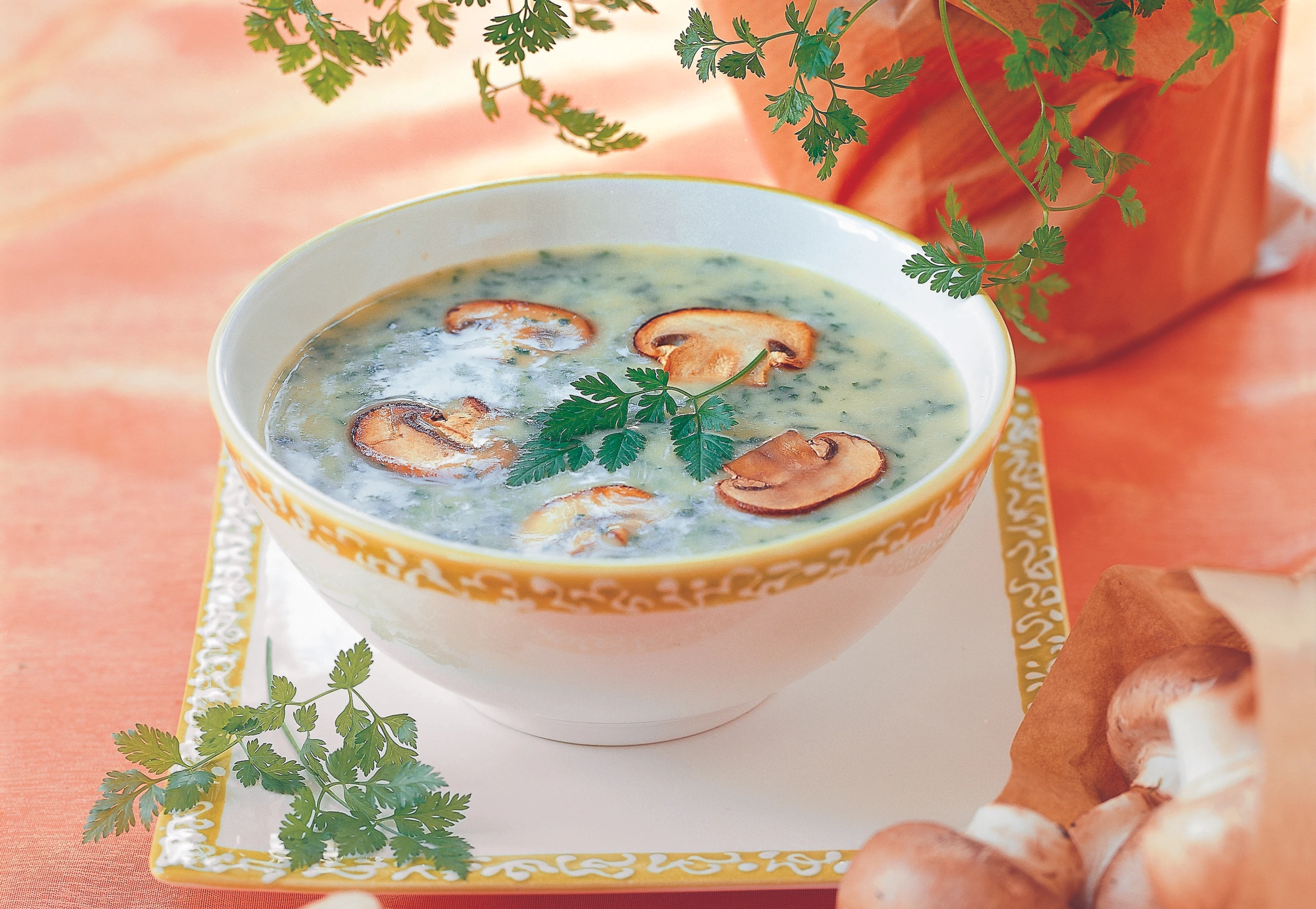Suppe nochmals aufkochen. Kerbel samt den Stielen grob zerschneiden, in die Suppe rühren und mit einem Stabmixer fein pürieren. Pilze untermischen. Suppe eventuell nachwürzen, in Teller schöpfen und rasch servieren.