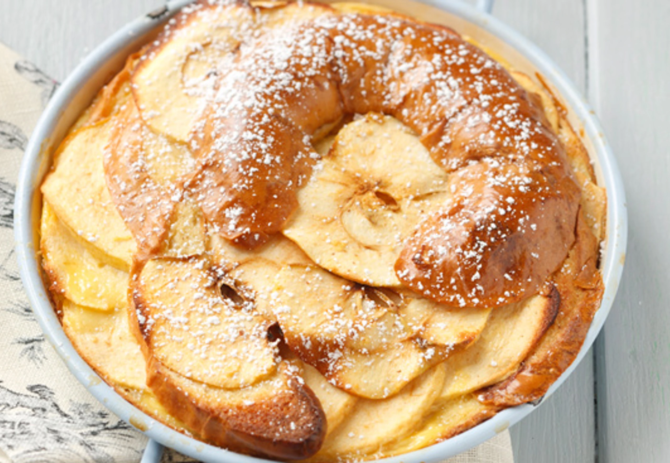 Kipferl- und Apfelscheiben abwechselnd in die Form schichten und im Rohr (mittlere Schiene / Gitterrost) ca. 45 Minuten backen. Auflauf aus dem Rohr nehmen und mit Staubzucker bestreut servieren.