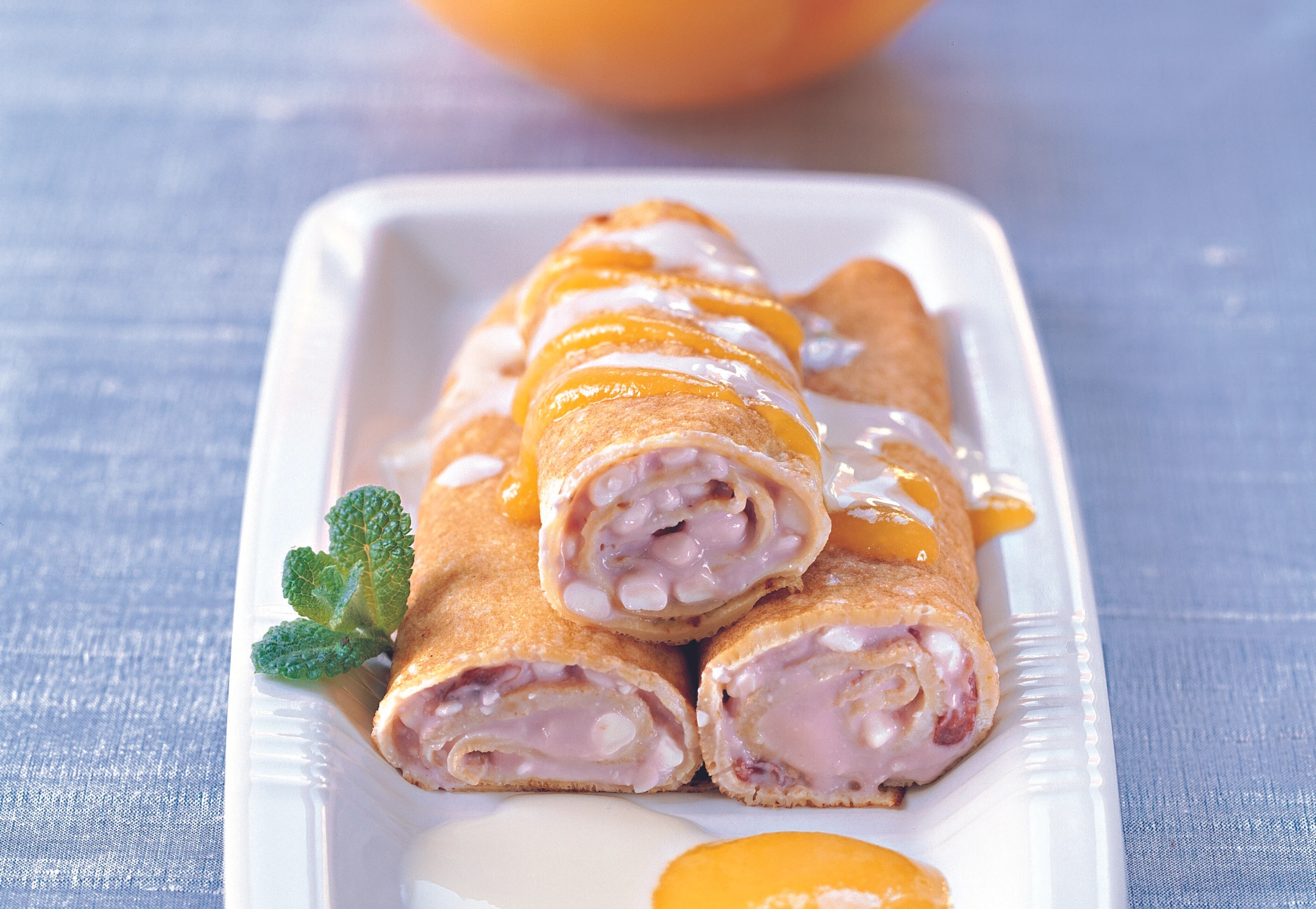 Kirsch-Joghurt-Crêpes mit Mangosauce