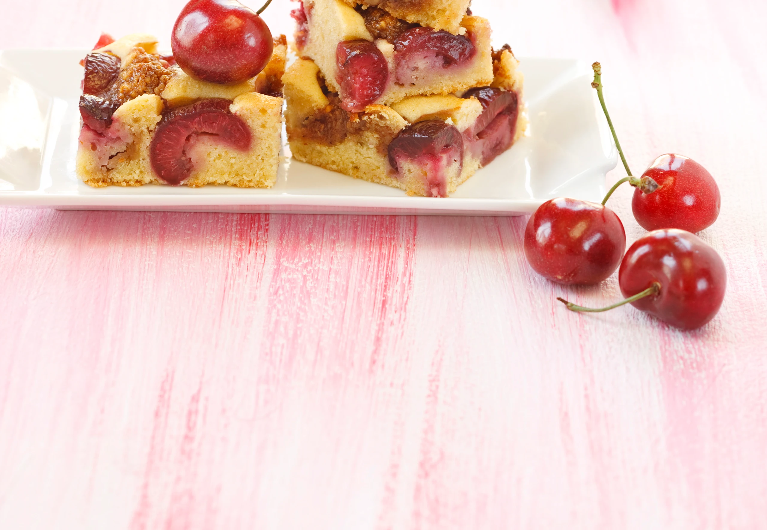 Teig auf dem Backblech verstreichen, Karamell mit einem Löffel in Form von Tupfen darauf verteilen und mit Kirschen belegen. Kuchen im Rohr (mittlere Schiene / Gitterrost) ca. 30 Minuten backen. Kuchen herausnehmen, kurz überkühlen lassen und portionieren.
