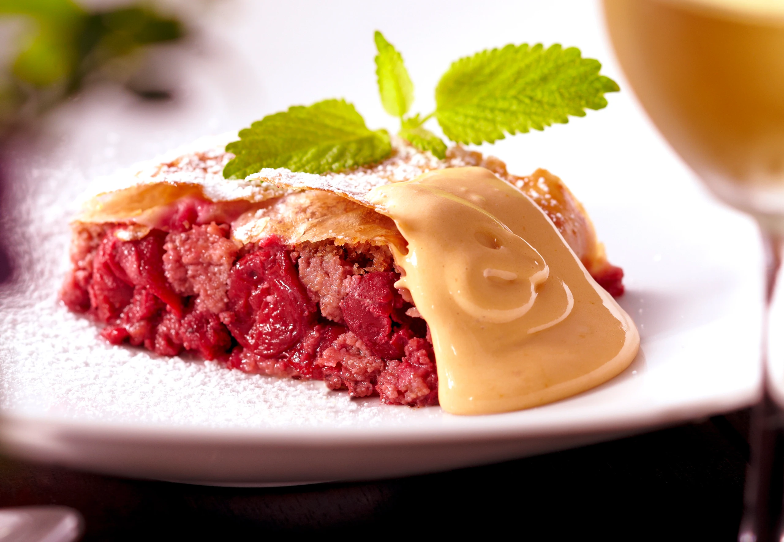 Kirschenstrudel mit Holunderblüten-Sabayon