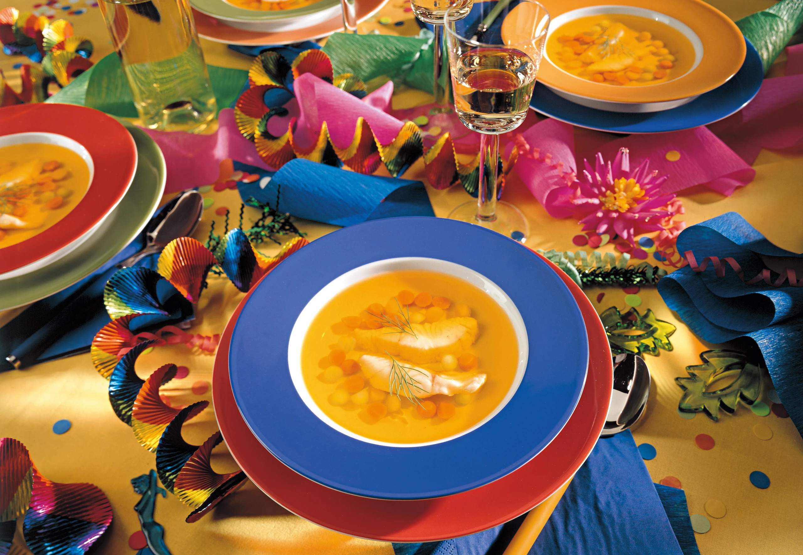 Gemüse und Fisch in Suppentellern anrichten. Kochfond durch ein feines Sieb in die restliche Suppe gießen, verrühren und erwärmen. Suppe in die Teller schöpfen und mit Dillzweigen garniert servieren.
