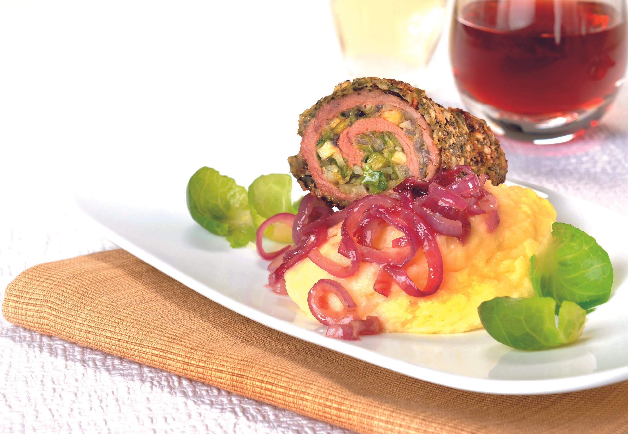 Kleine Rindsrouladen mit Kohlsprossenfülle und Erdäpfelpüree