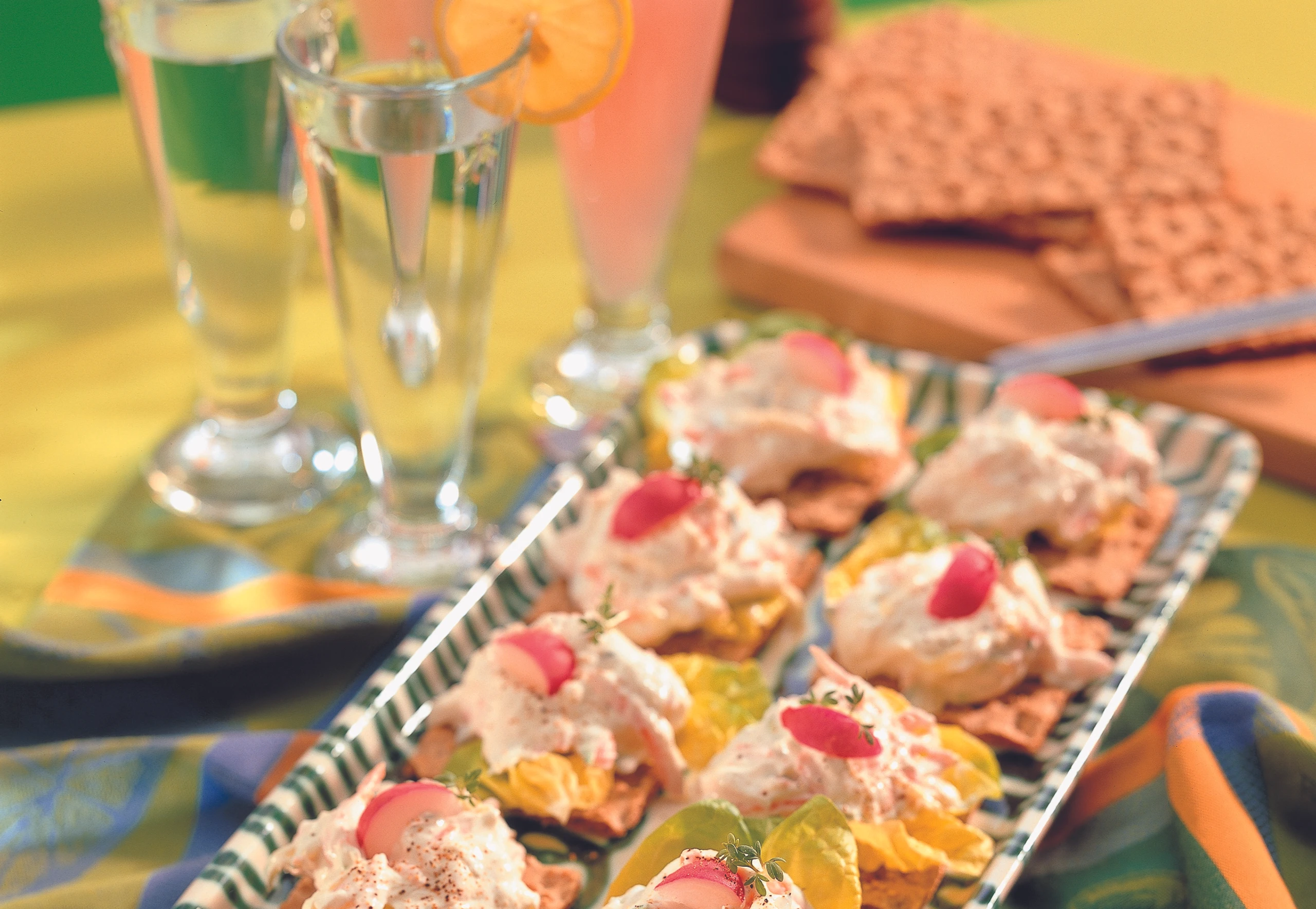 Topfen mit Sauerrahm, Gemüse, Kresse (einige Blättchen für die Garnitur reservieren) sowie Salz und Pfeffer verrühren. Die Radieschen vierteln. Knäckebrote quer halbieren, mit Salat belegen, mit Aufstrich bestreichen und mit Radieschen und Kresseblättchen garnieren.