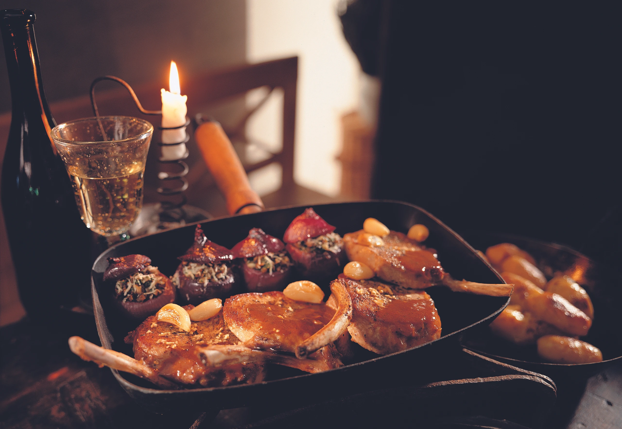 Knoblauch-Koteletts mit gefüllten Zwiebeln
