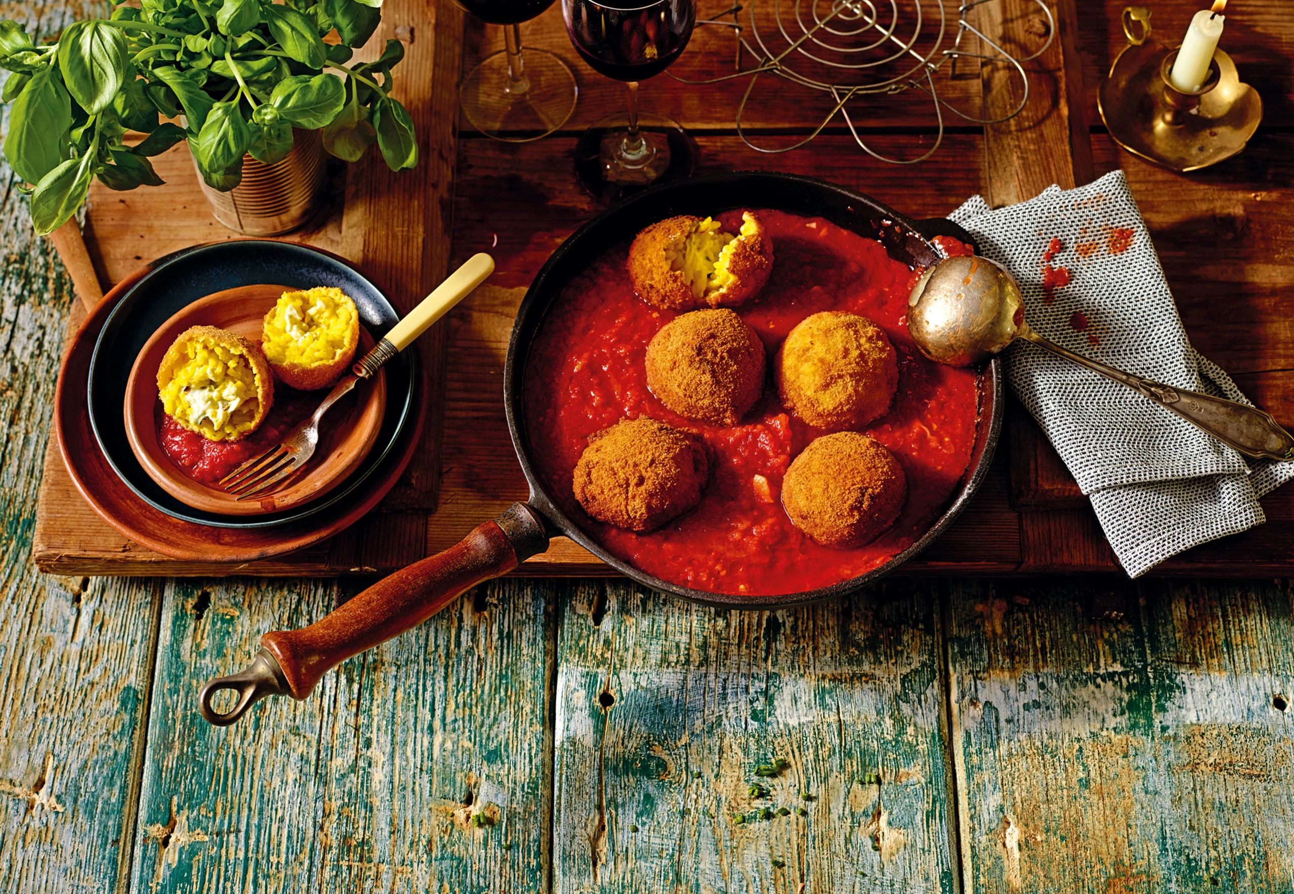 Knusprige Arancini: Risottobällchen in Paradeissauce