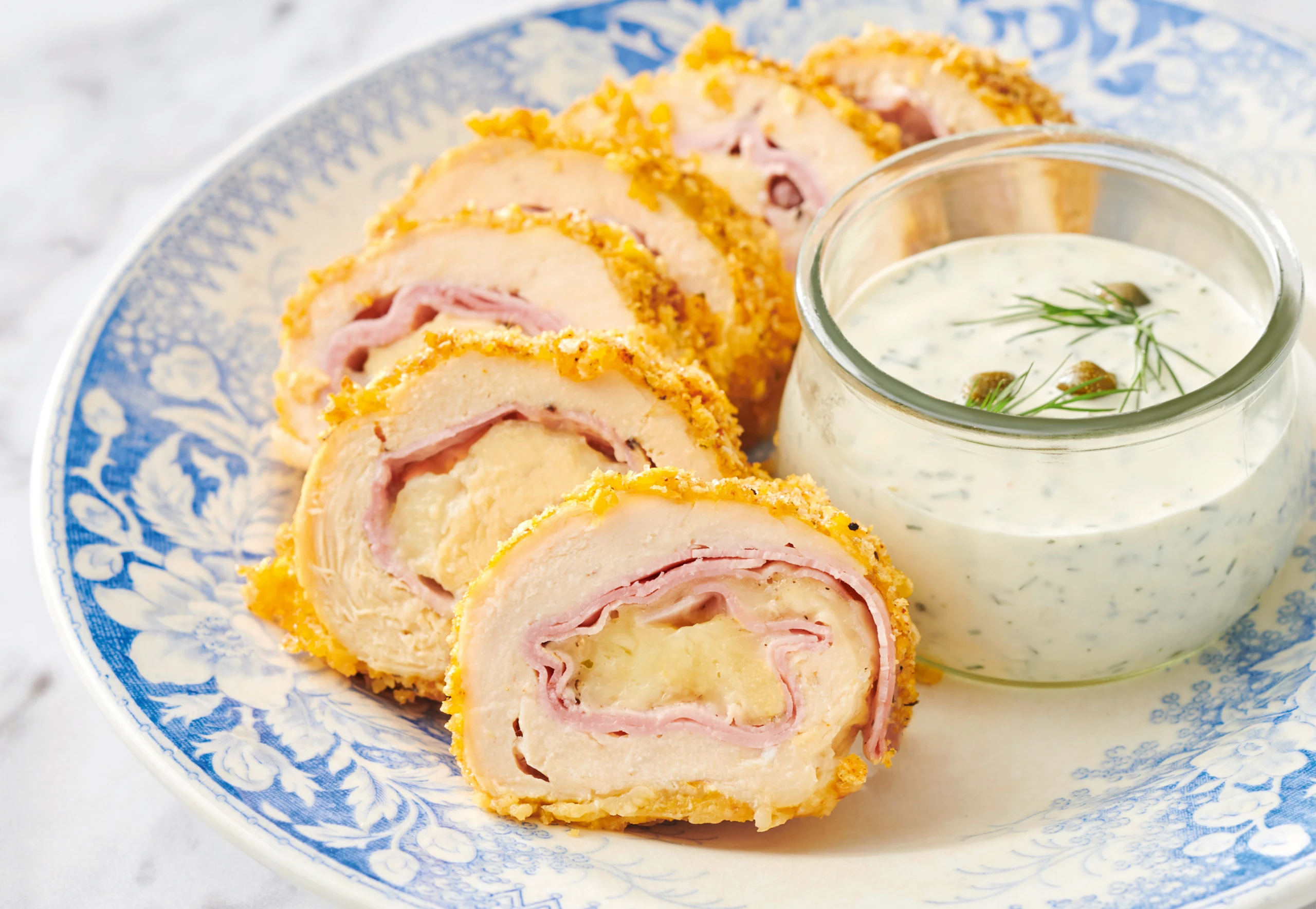 Knusprige Hühner-Rollatini mit Schinken-Käsefülle