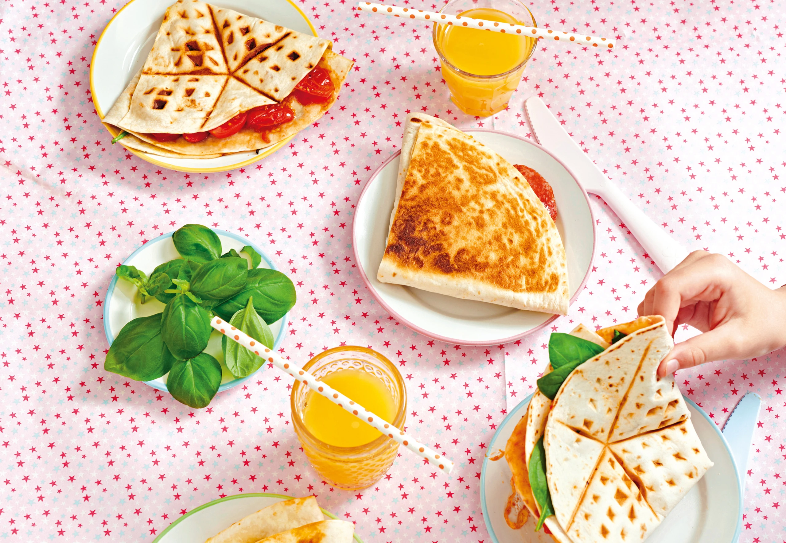 Tortillas nach Lust und Laune mit den Zutaten belegen.