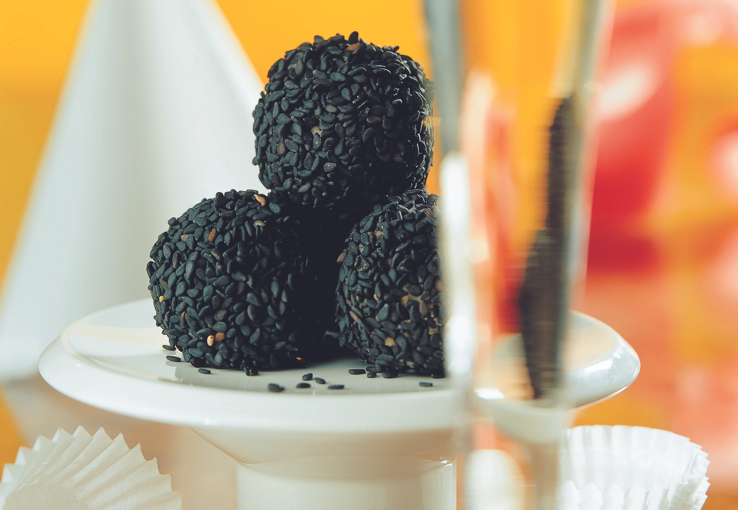Aus der Masse Bällchen formen und im Sesam wälzen.