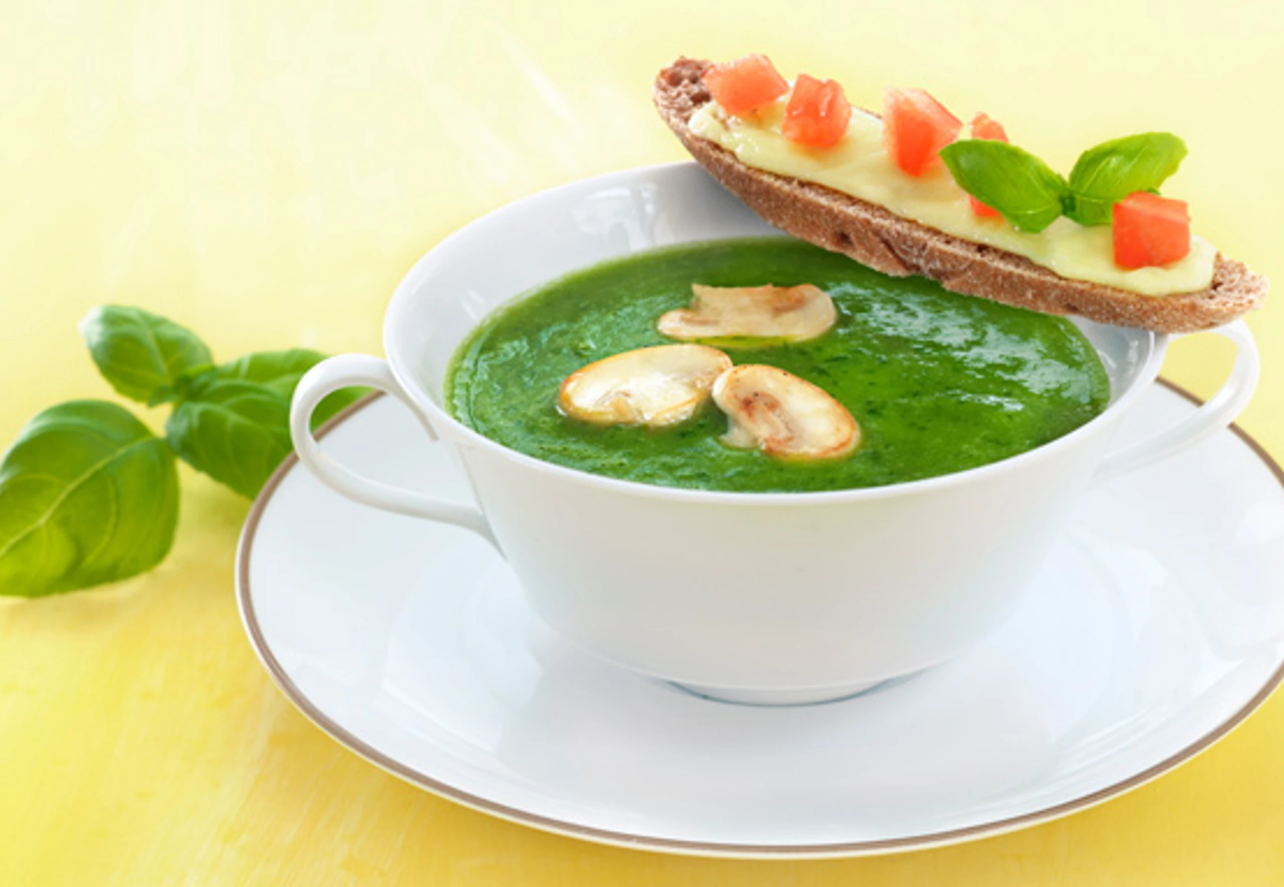 Kohlrabi-Basilikum-Suppe mit Champignons
