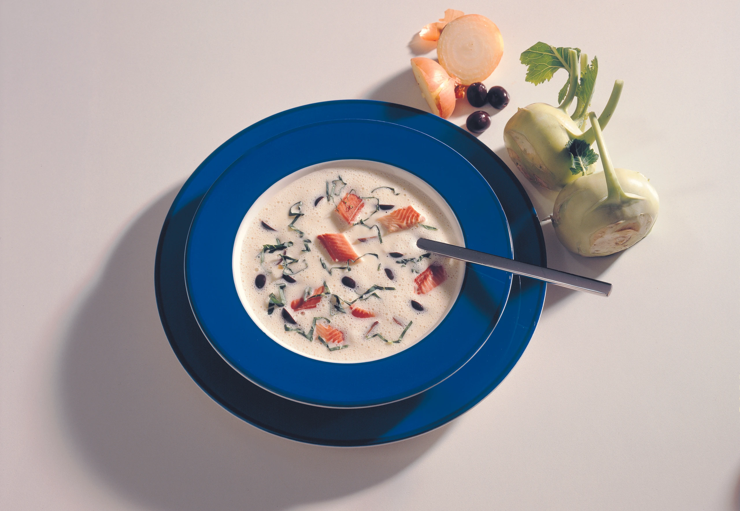 Kohlrabi-Cremesuppe mit Forellenfilet