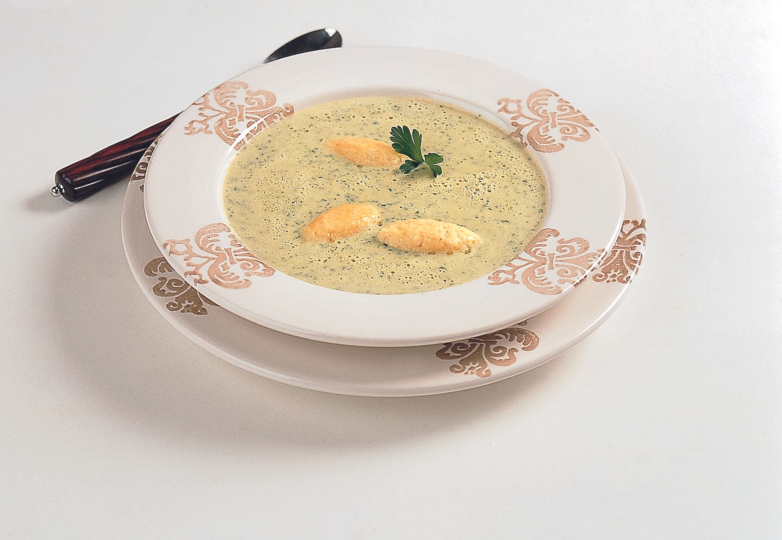 Kohlrabi-Petersilsuppe mit Parmesannockerln