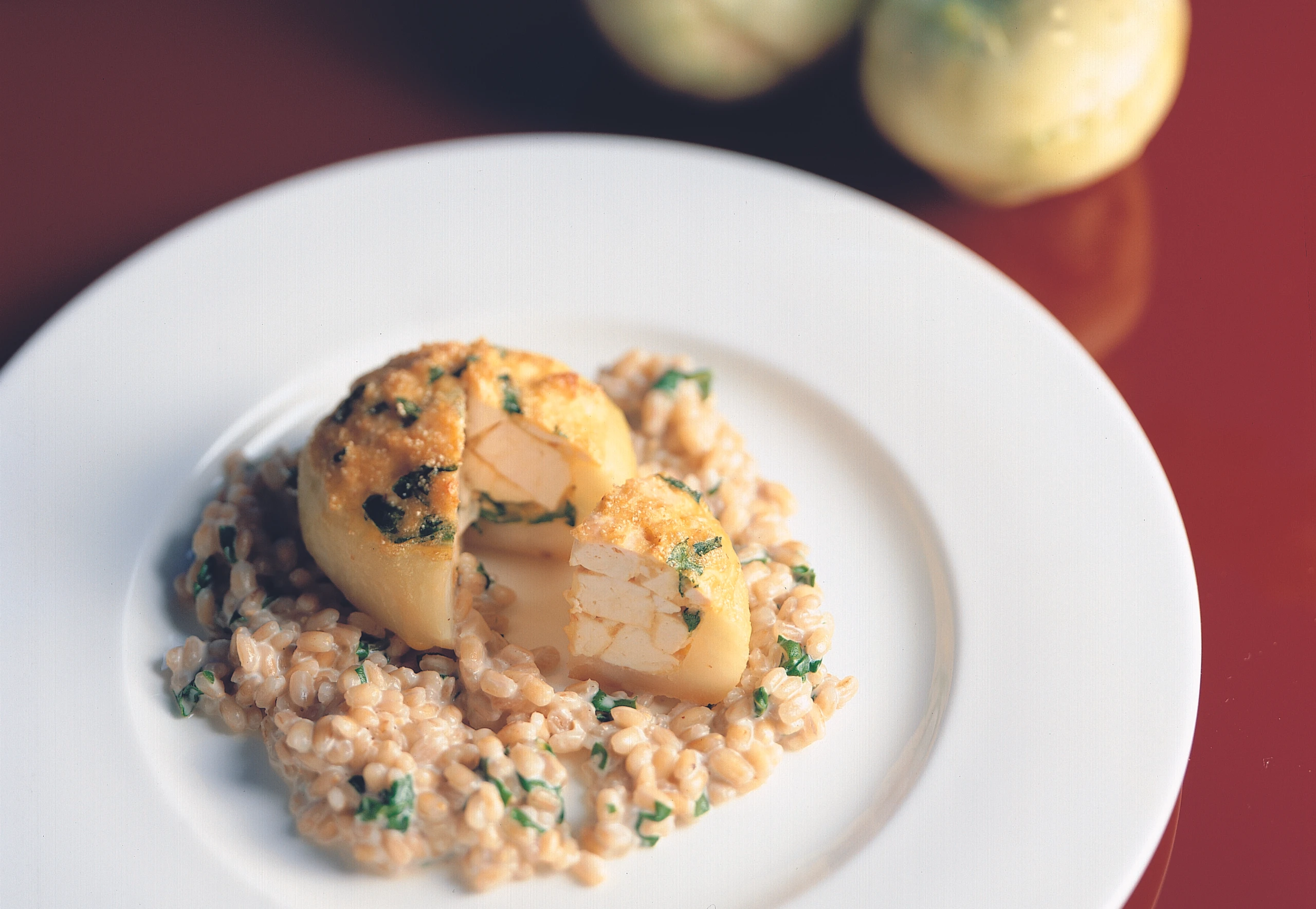 Kohlrabi mit Tofu-Fülle auf Gerstenragout