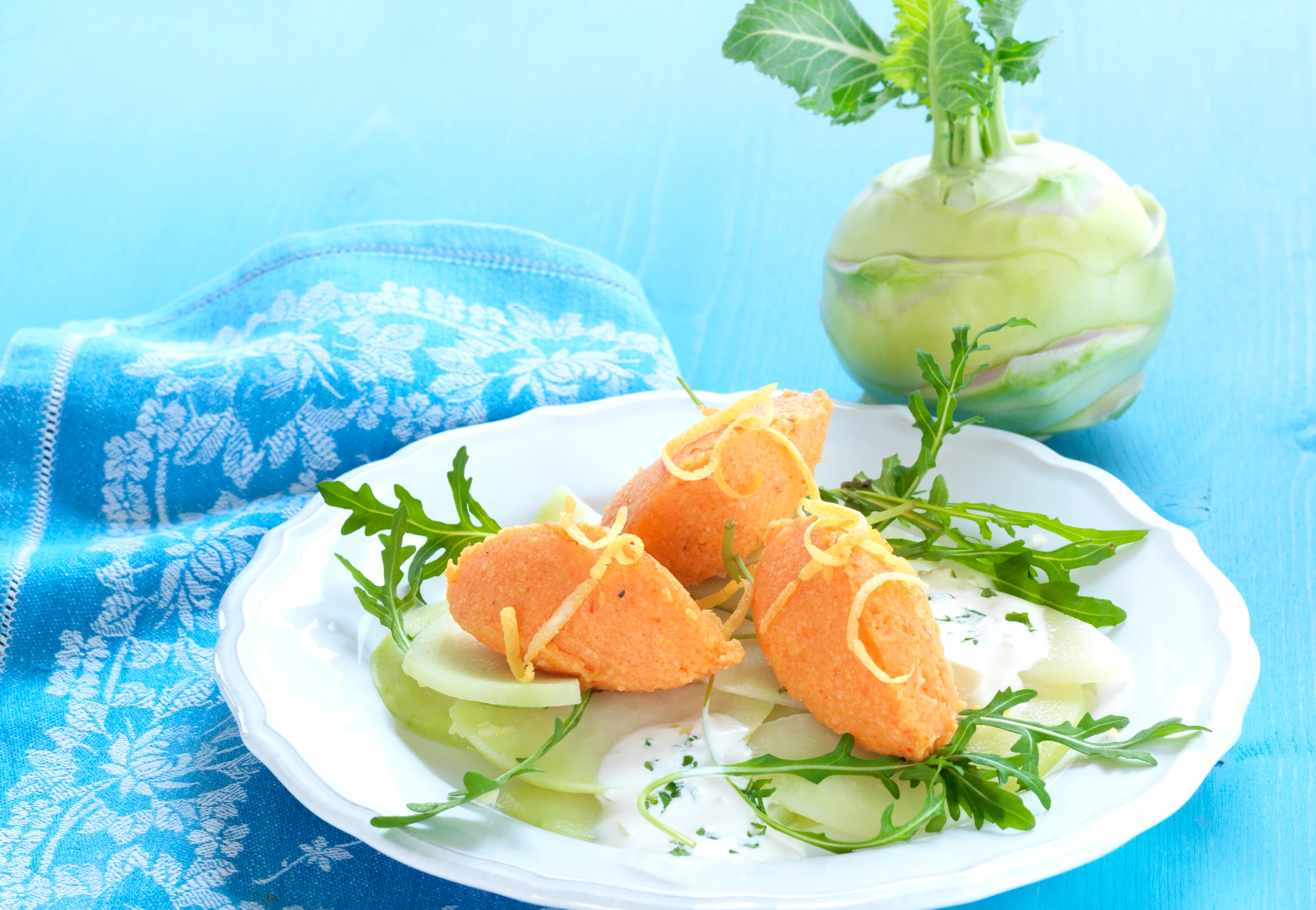 Kohlrabi in Zitronensauce mit Parmesan-Polentanockerln