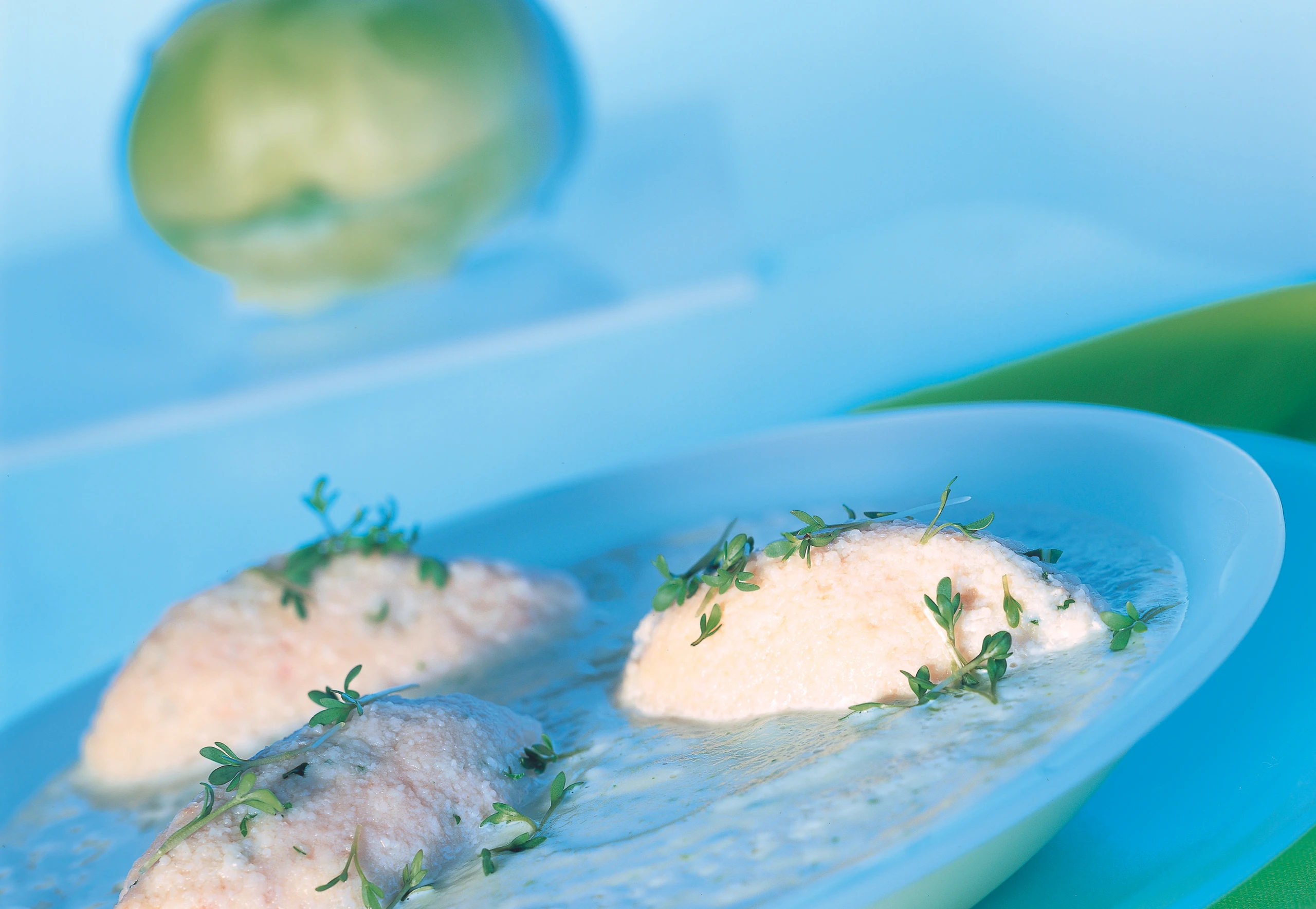 Kohlrabicremesuppe mit Schinkennockerln und Kresse