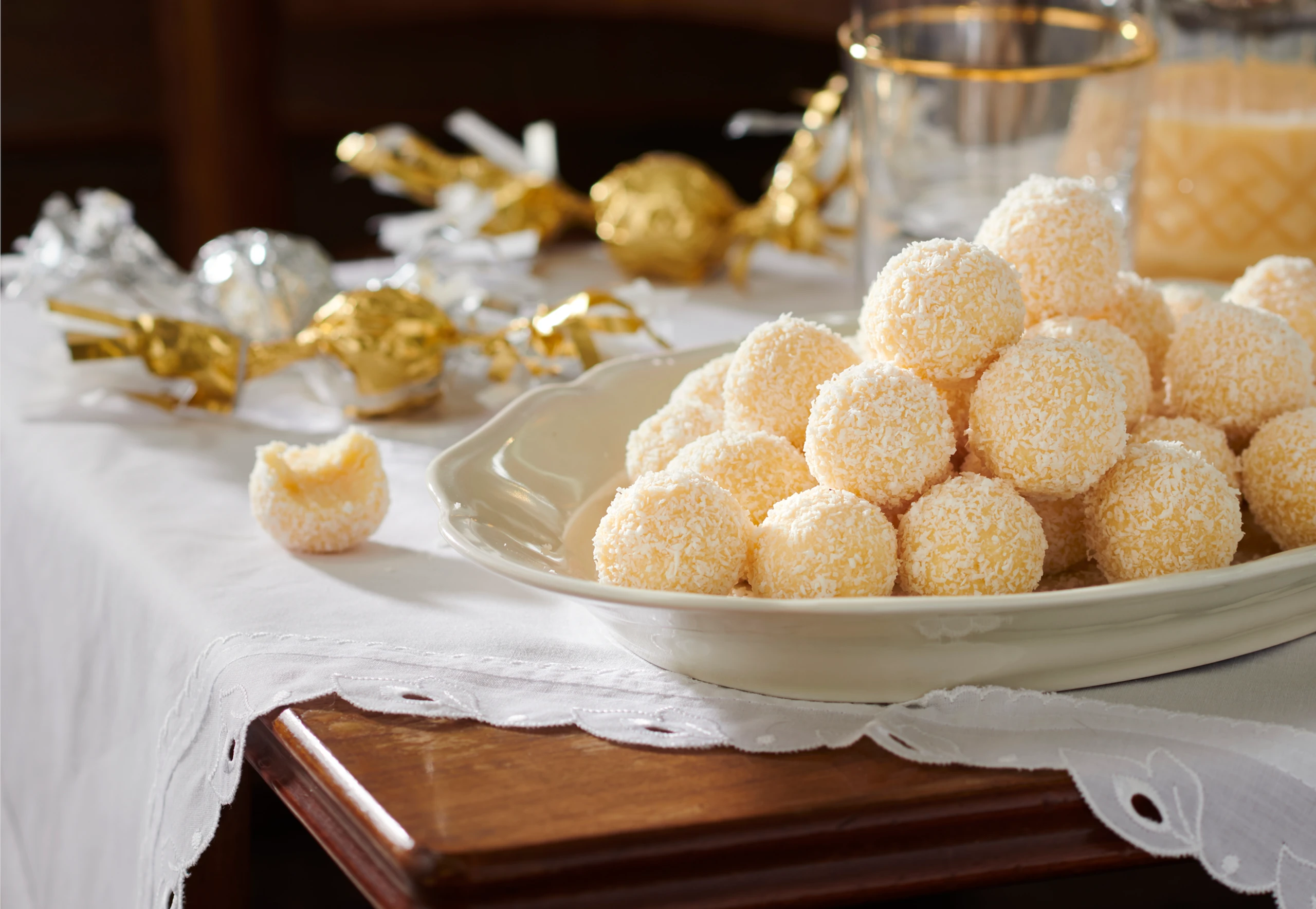 Mit einem Teelöffel kleine Stücke abstechen und zu Kugeln rollen. Konfekt in Kokosette wälzen.