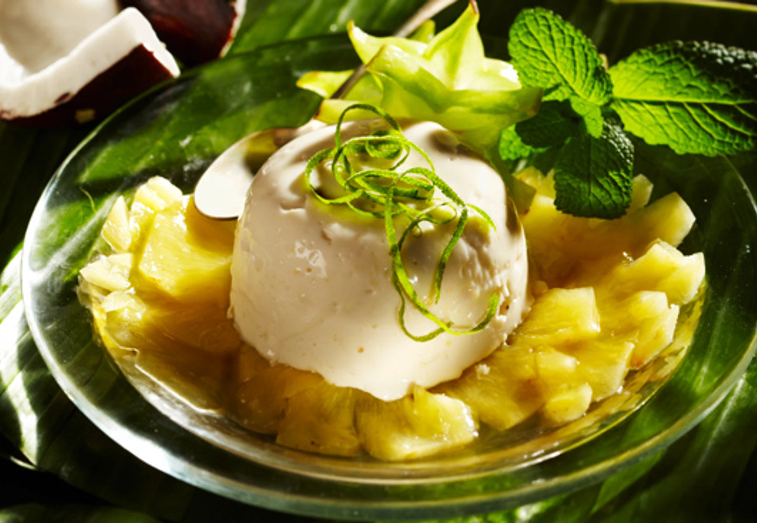 Kokos-Mousse mit Rum-Ananas