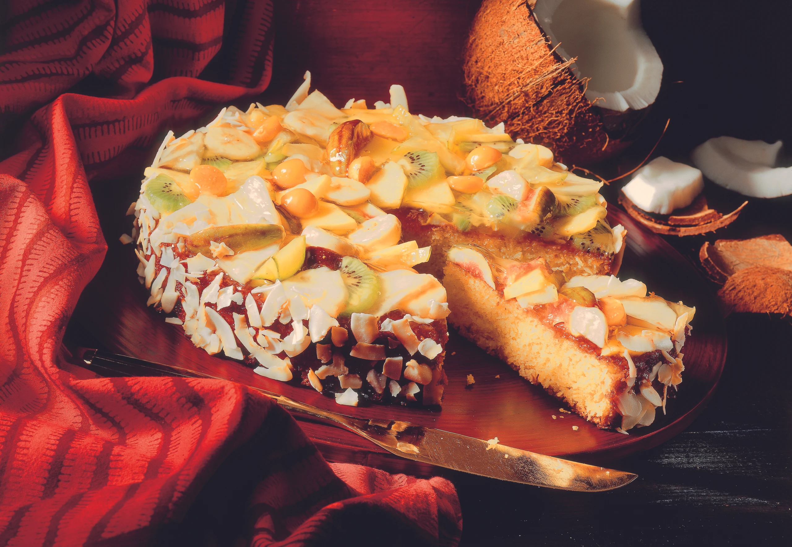 Kokos-Nuss-Torte mit Früchten