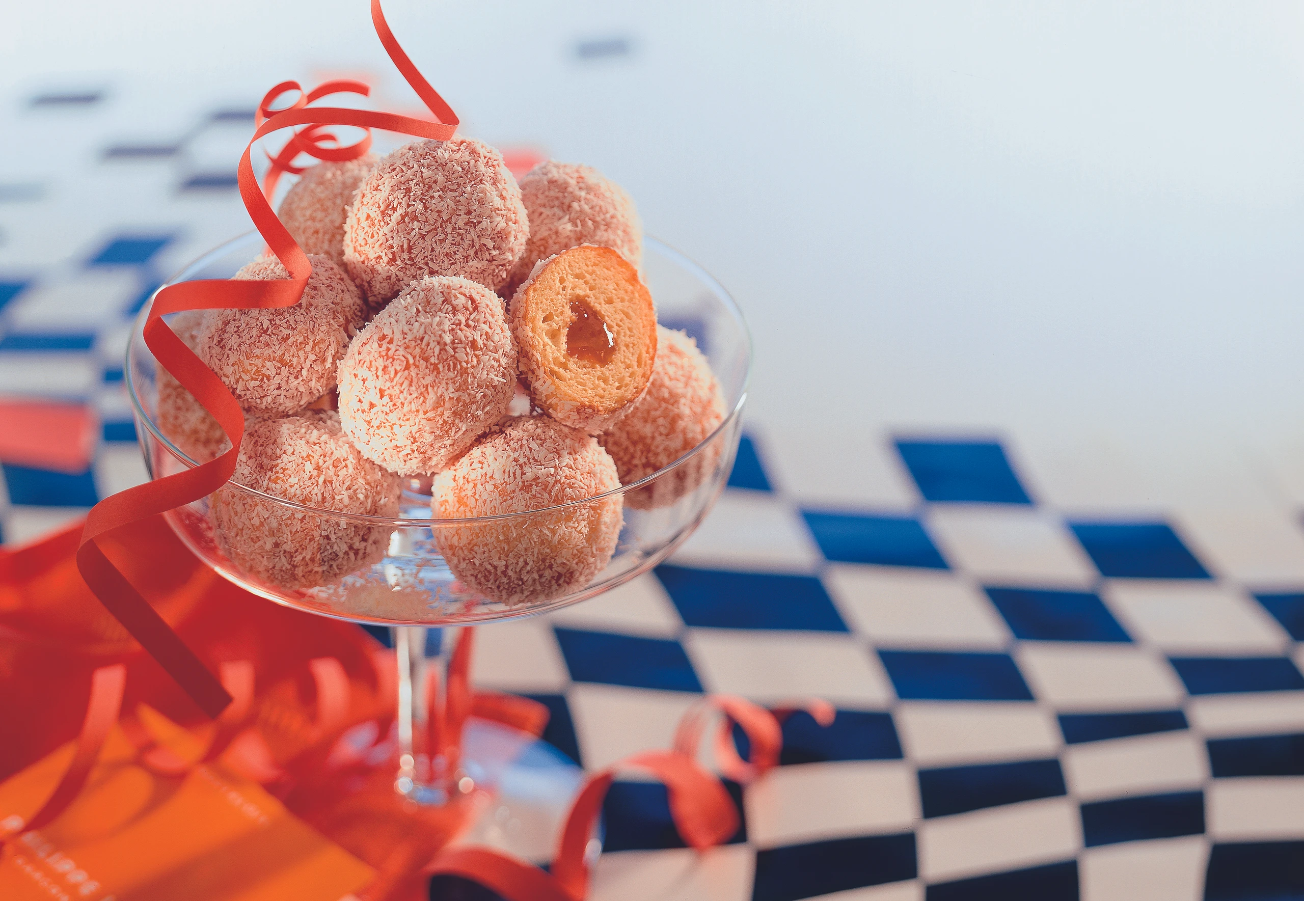 Übrige Marmelade erhitzen (eventuell mit wenig Wasser verdünnen). Krapfen rundum mit Marmelade einstreichen und in Kokosette wälzen.