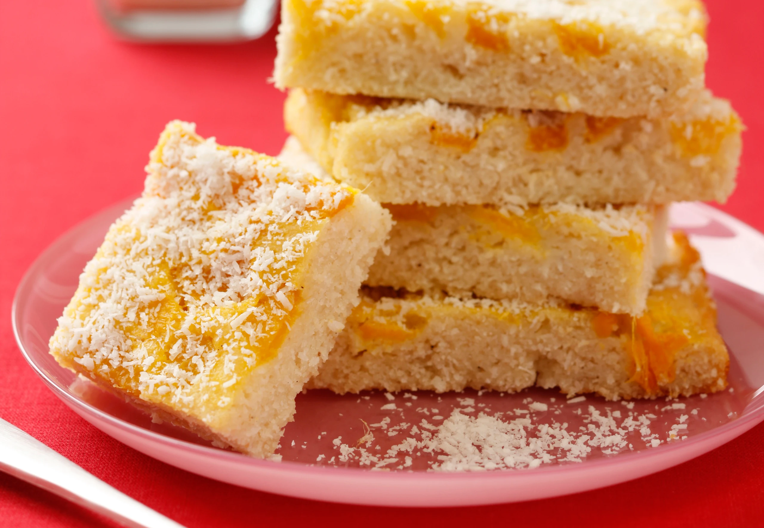 Kokoskuchen herausnehmen, etwas abkühlen lassen und portionieren.