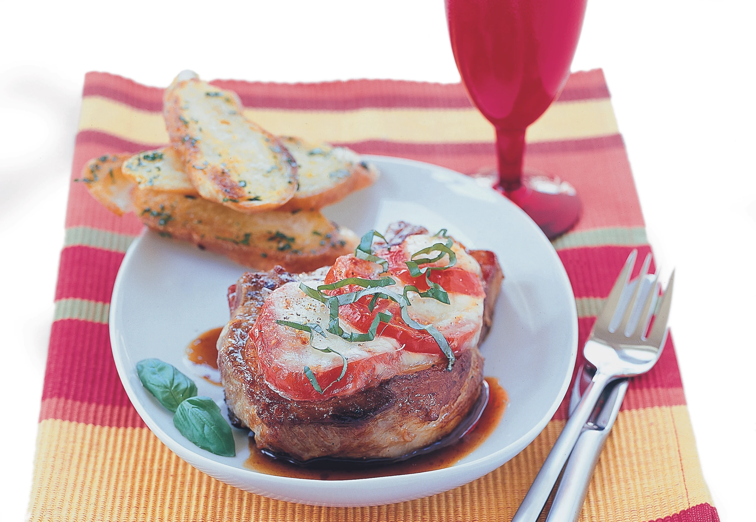 Koteletts mit Mozzarella und Paradeisern überbacken
