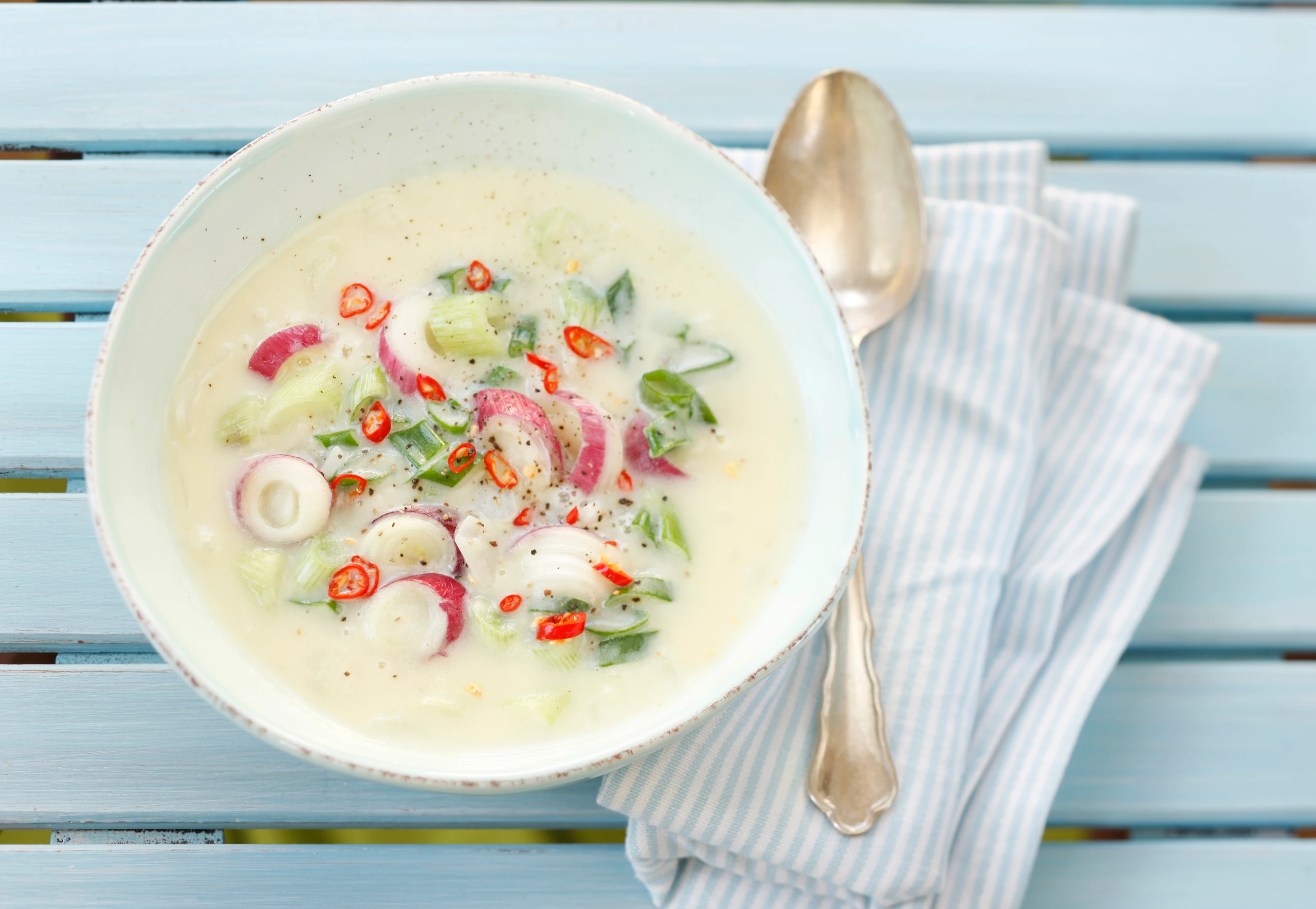 Kräuter-Zwiebelsuppe mit Chili