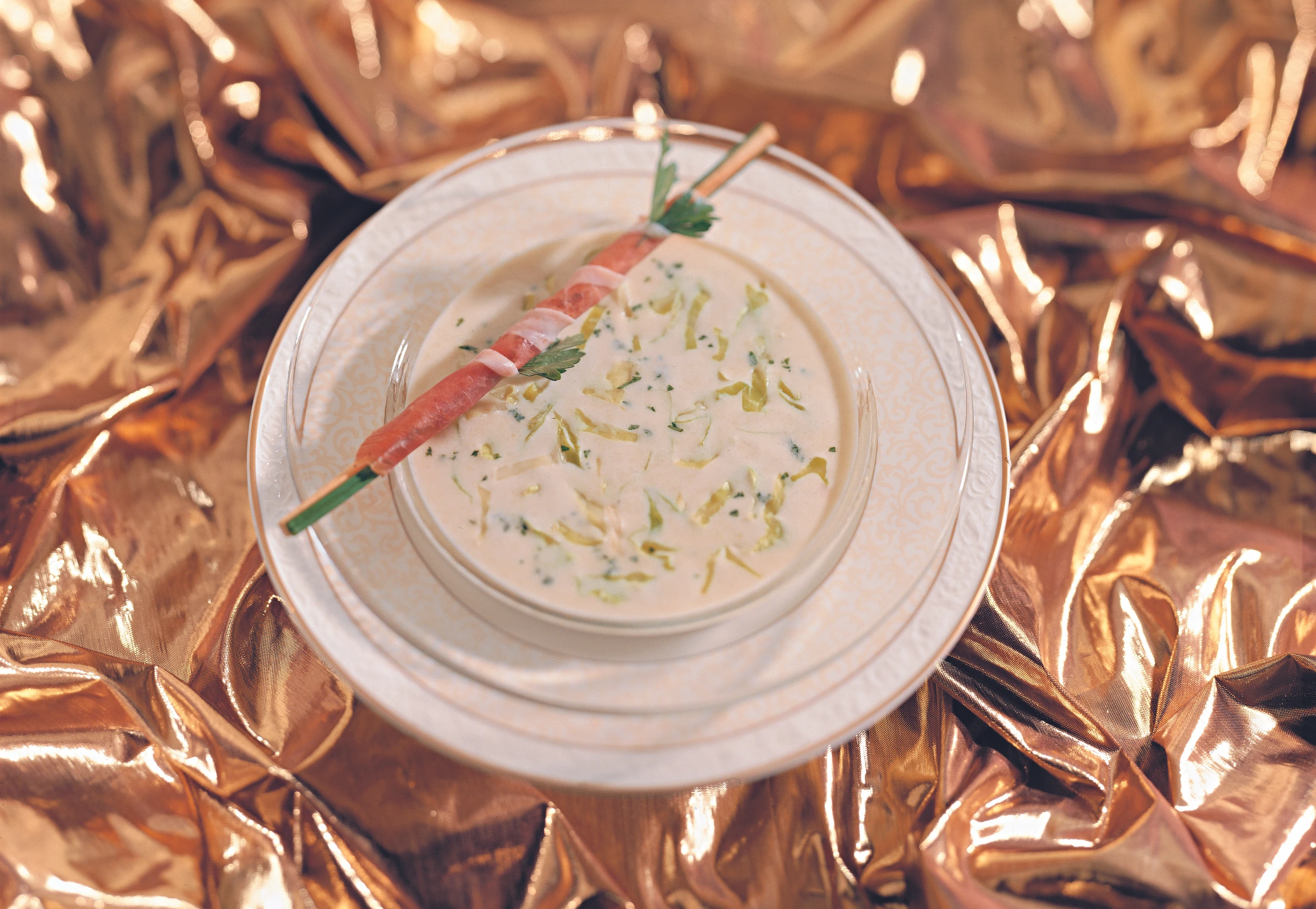 - Suppe mit einem Stabmixer fein pürieren, abschmecken, Petersil und Krautstreifen einrühren. Suppe in Teller schöpfen und mit den Schinken-Grissini servieren.