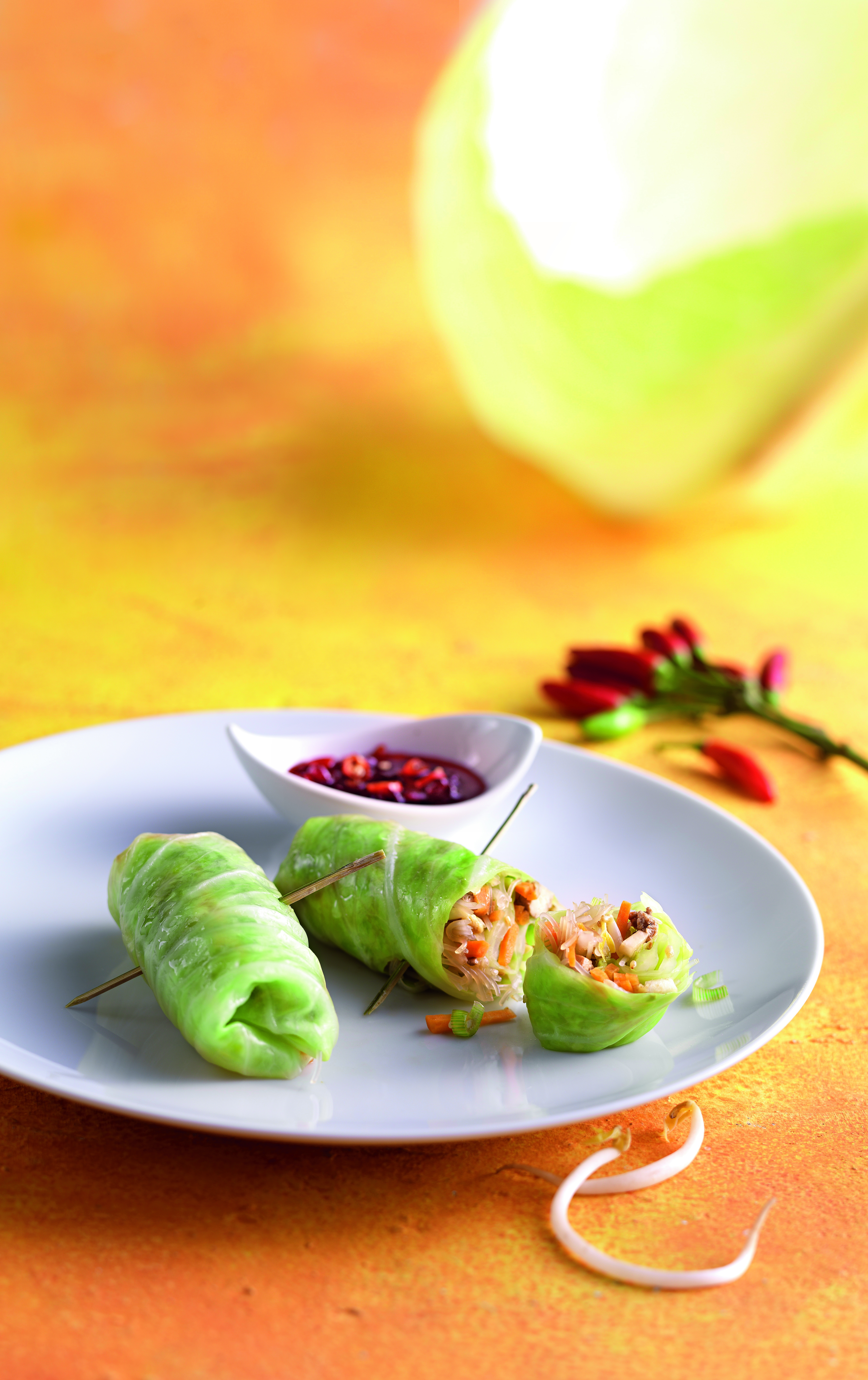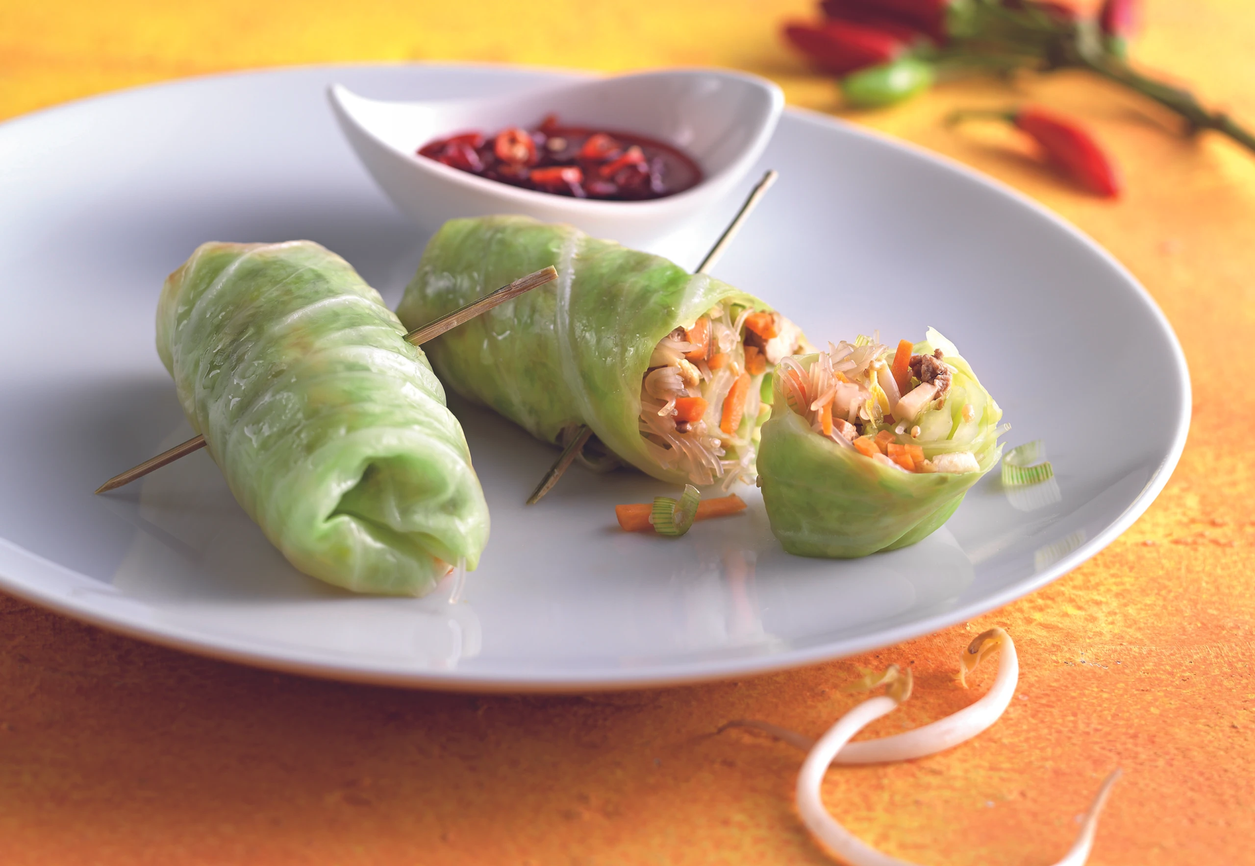 Krautrollen mit Tofu-Gemüse-Sprossen-Füllung