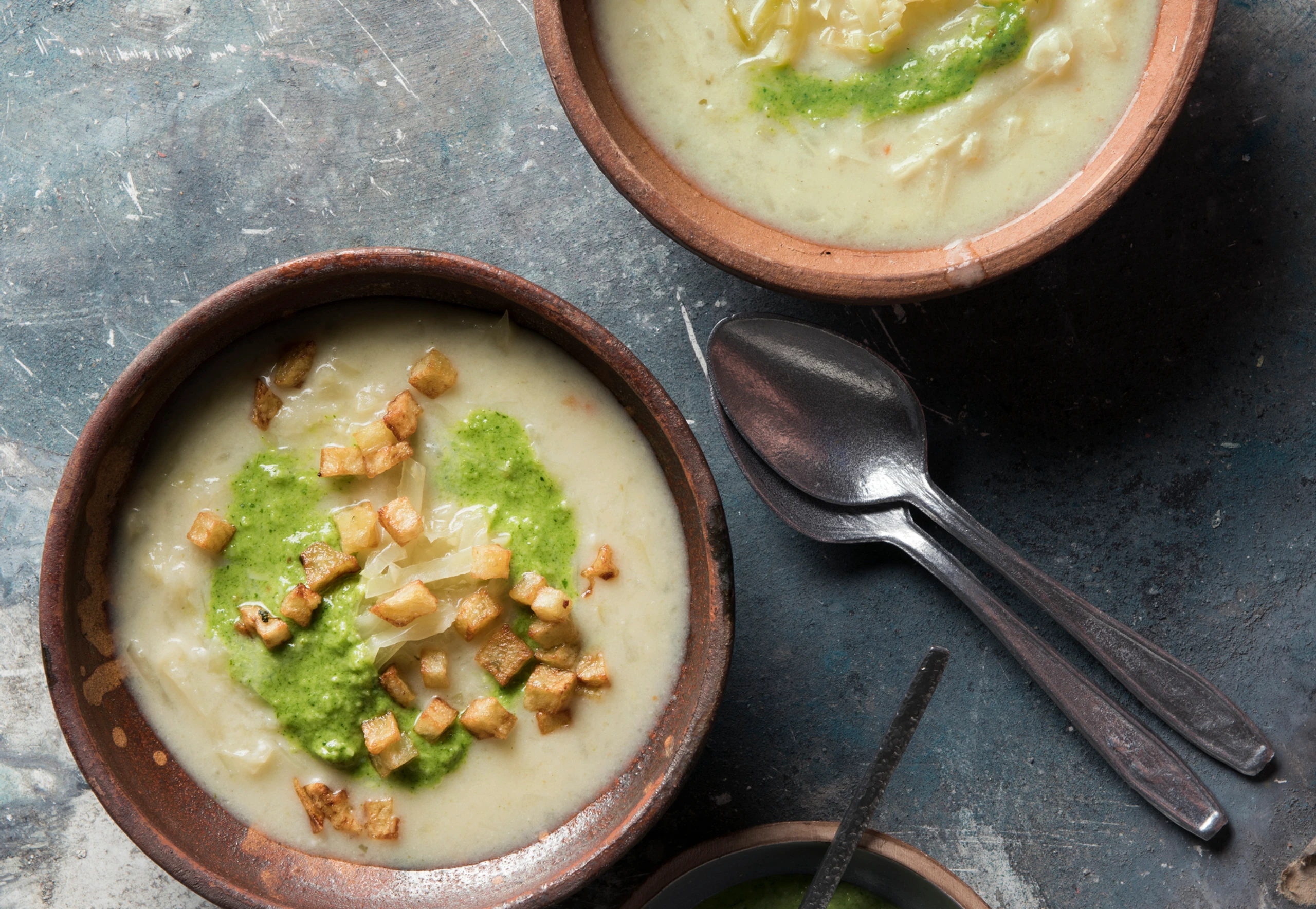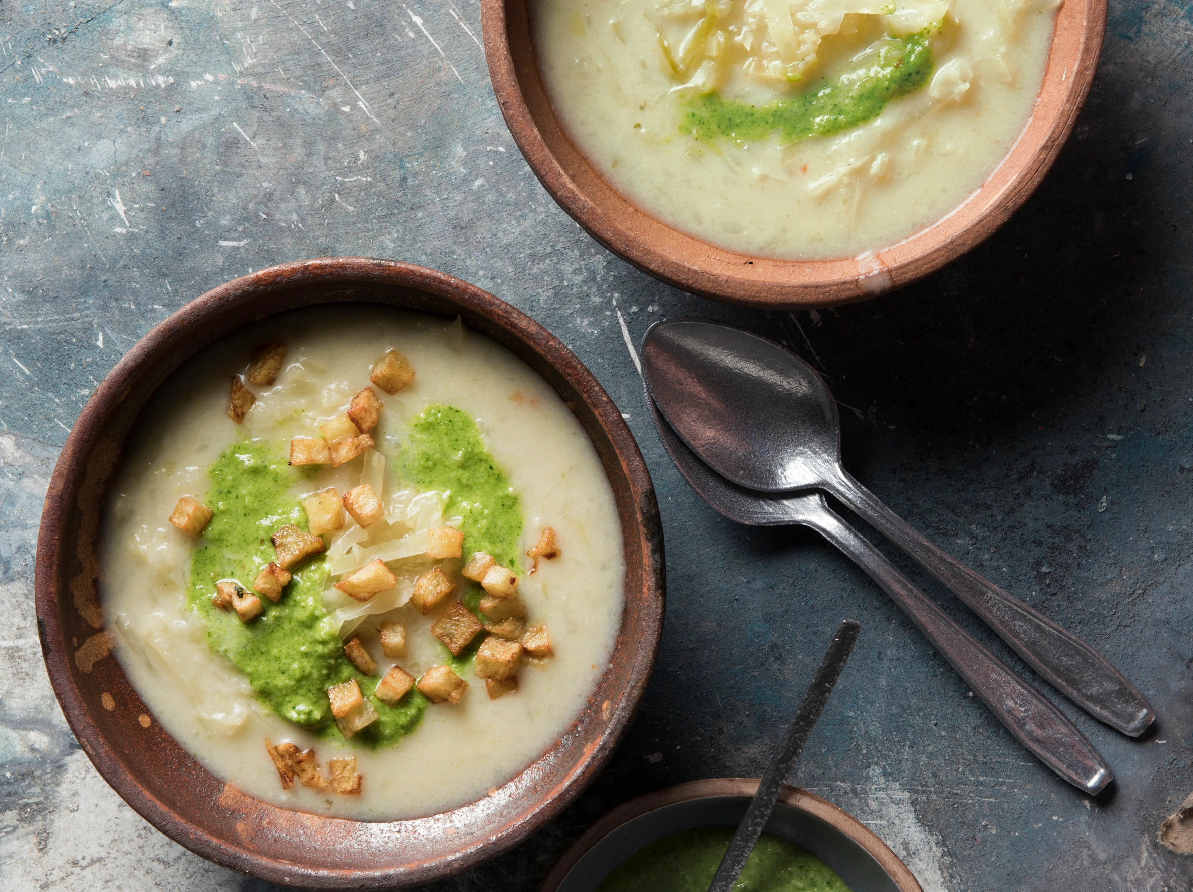 Krautsuppe mit Kresse-Mandelpesto