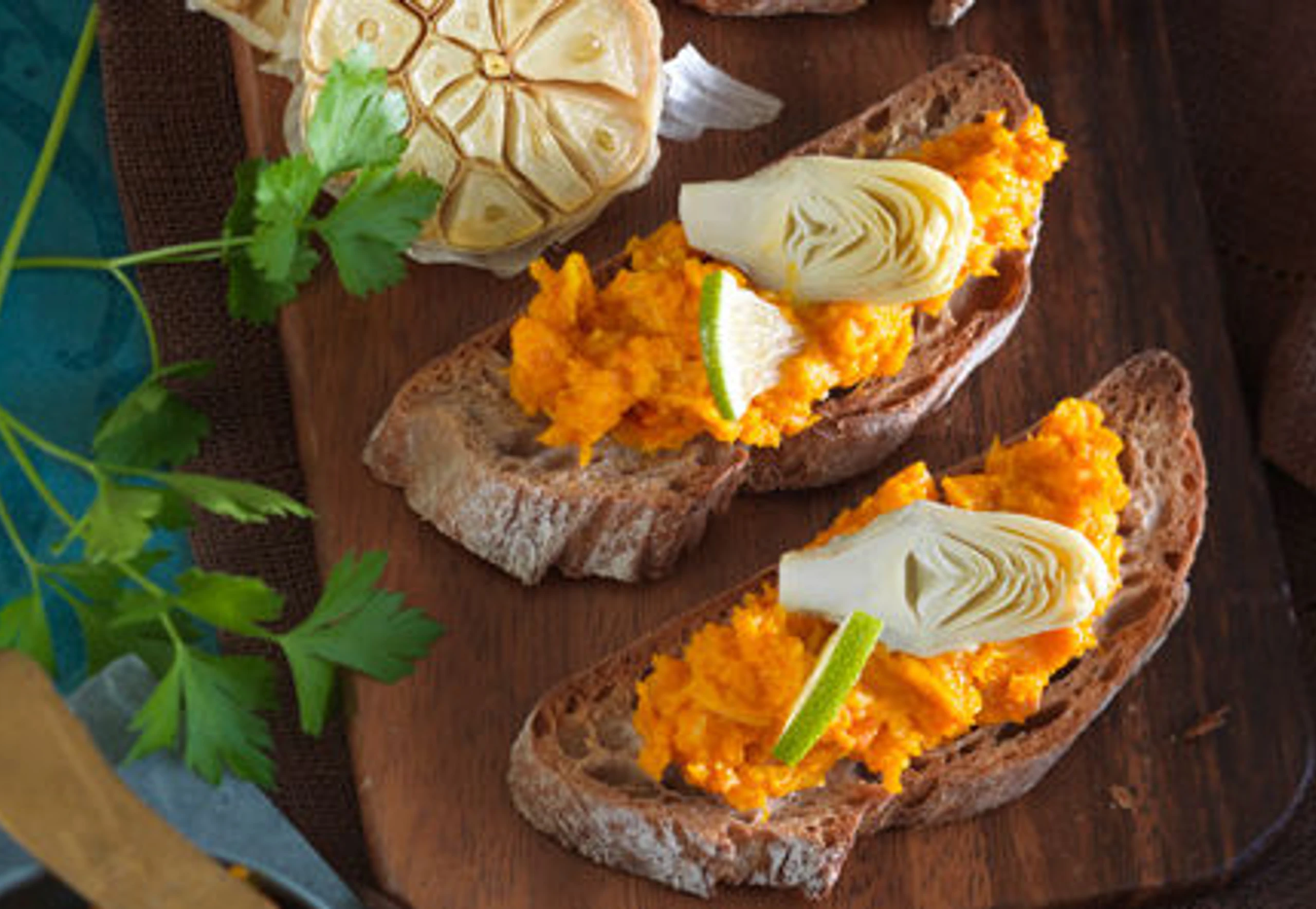Kürbis-Crostini mit Artischocken