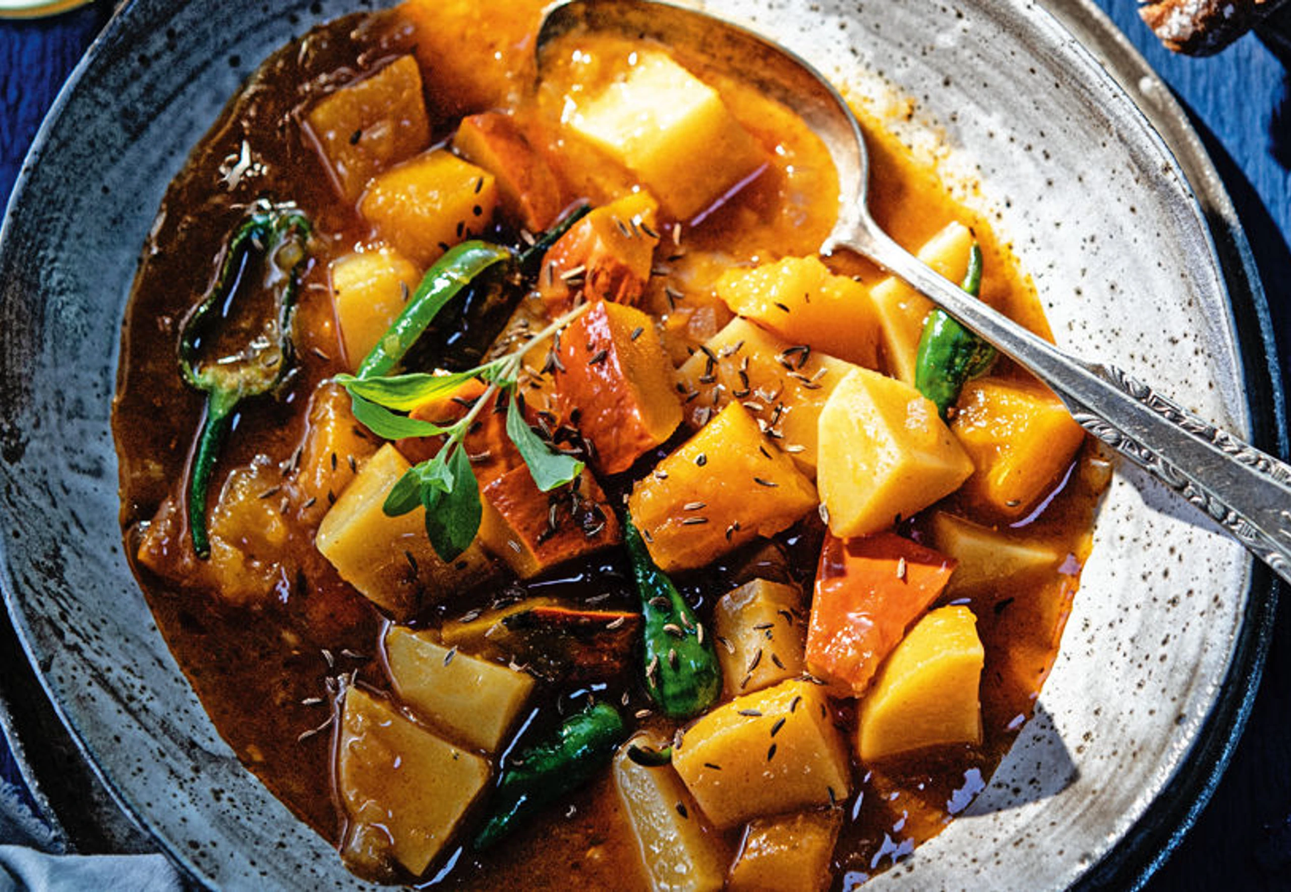 Kürbis-Erdäpfelgulasch mit Pimentos