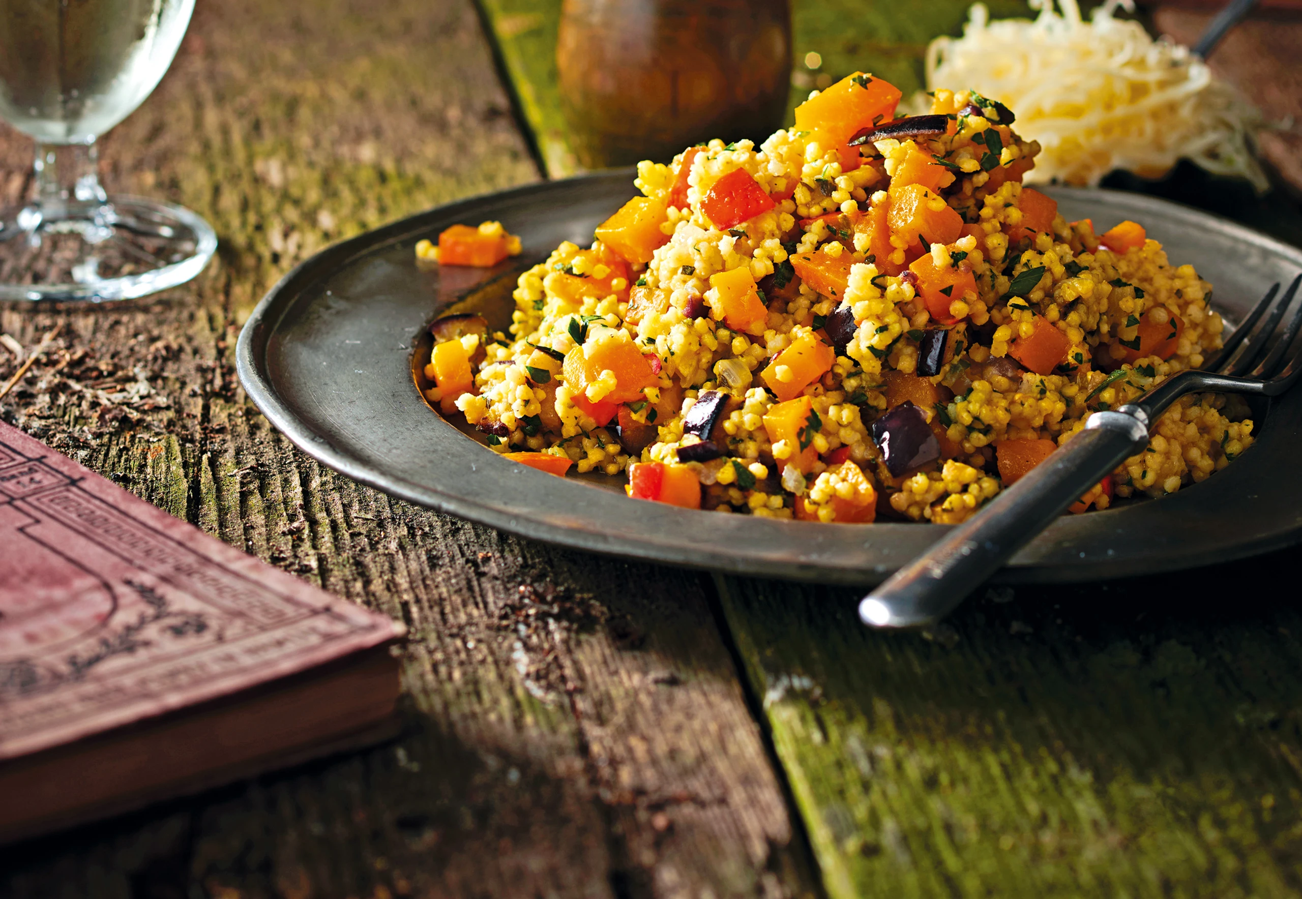 Kürbis-Hirsesalat mit Melanzani und Bergkäse