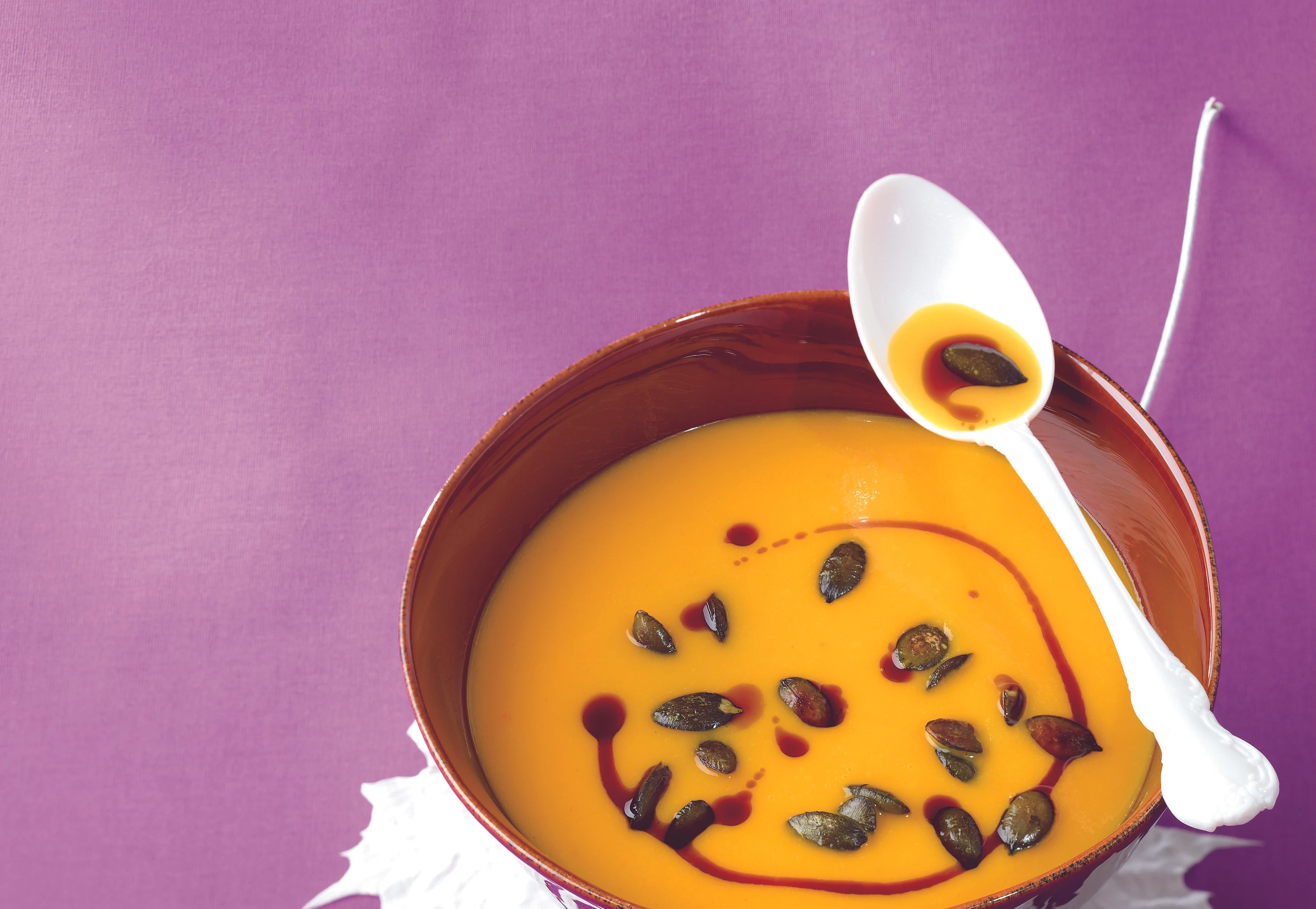 Orangenschale abreiben, Orangen schälen, Fruchtfleisch in Stücke schneiden, beides in die Suppe geben. Suppe pürieren und durch ein Sieb passieren. Mit Salz abschmecken und mit einem Pürierstab schaumig aufmixen. Suppe mit Kürbiskernöl beträufeln und mit Kürbiskernen bestreut servieren.