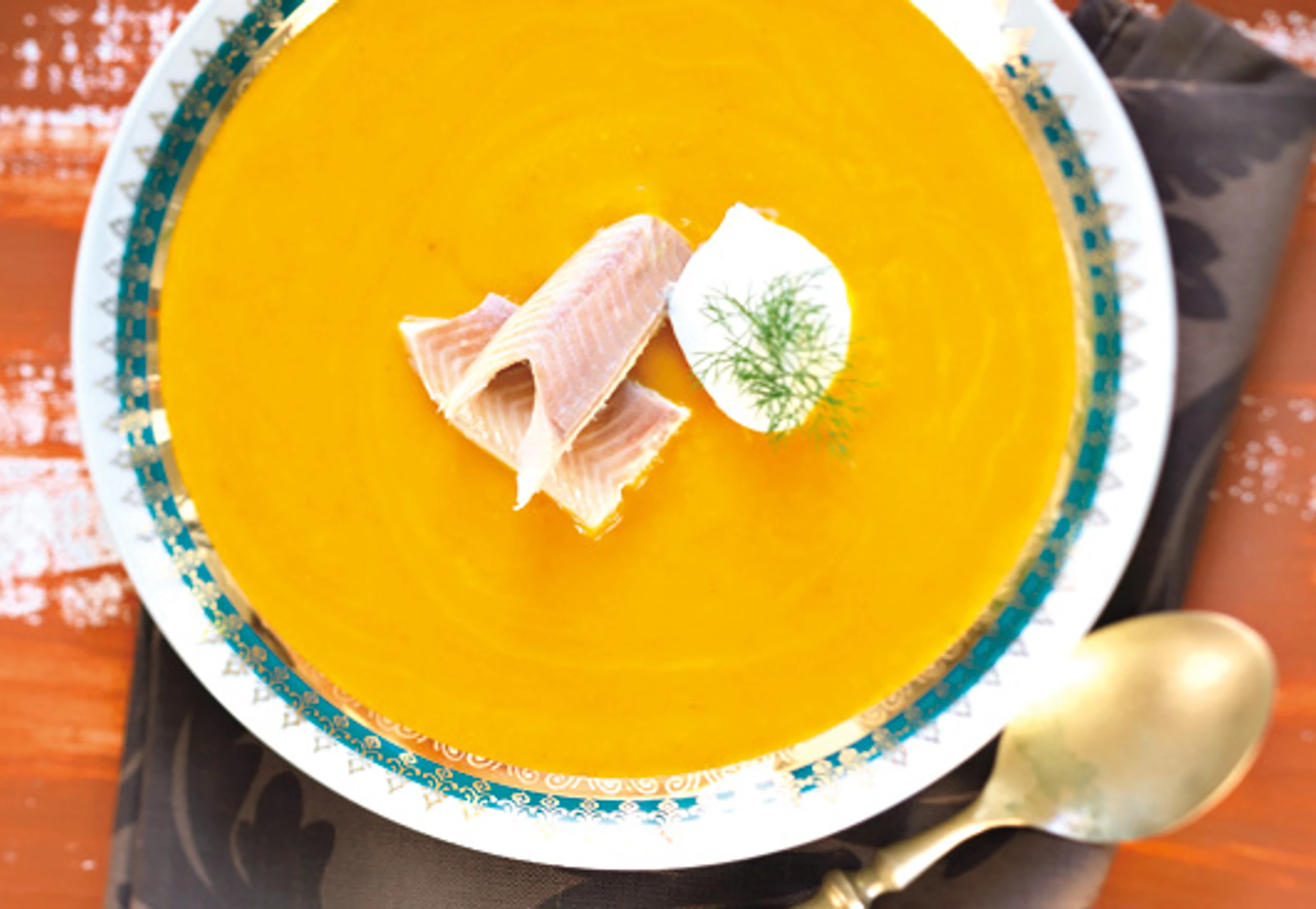 Forellenfilet in Stücke schneiden und in der Suppe anrichten. Suppe mit Schafjoghurt und eventuell mit Dille garniert servieren.