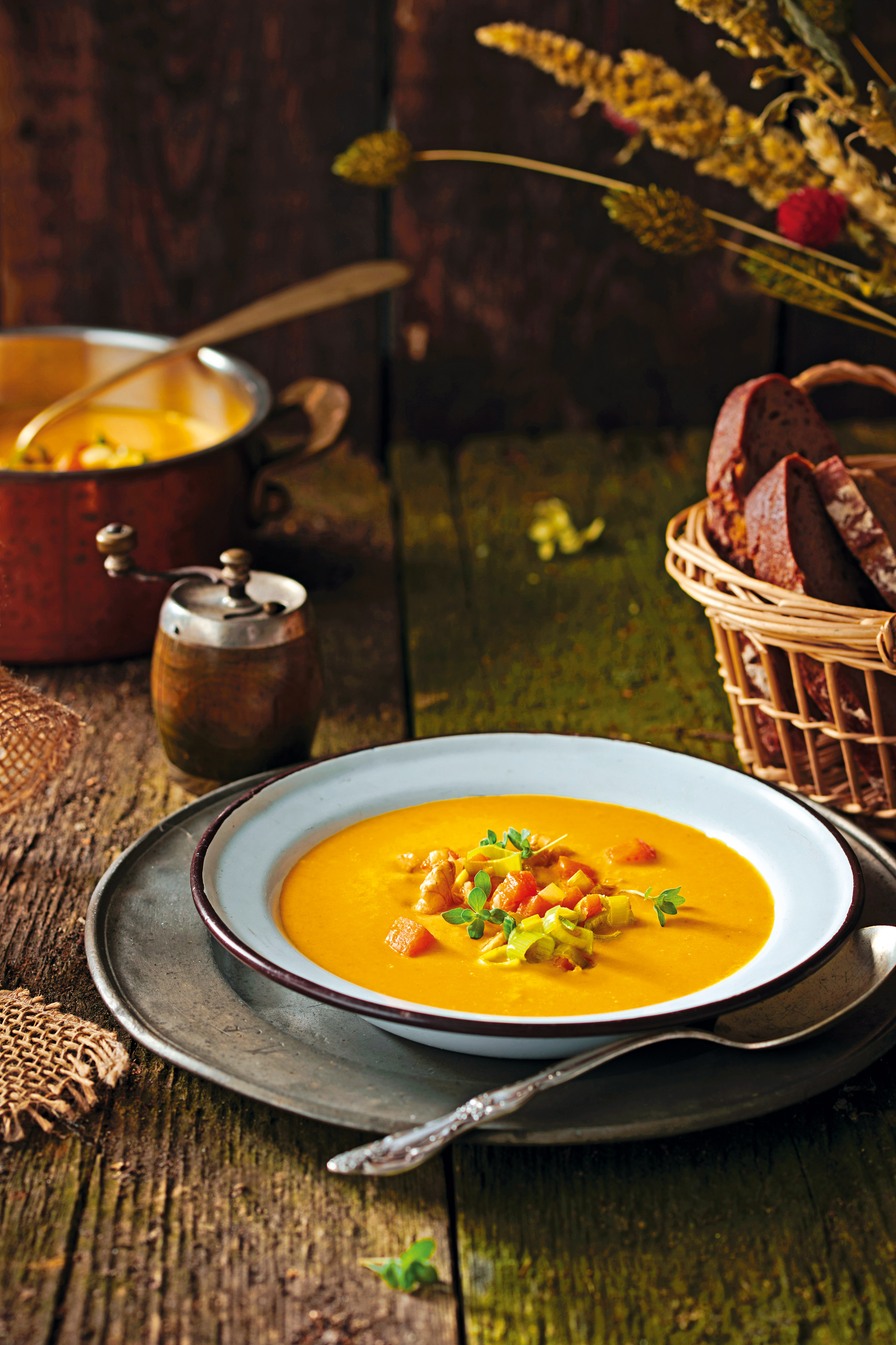 Kürbis-Orangensuppe mit Walnüssen