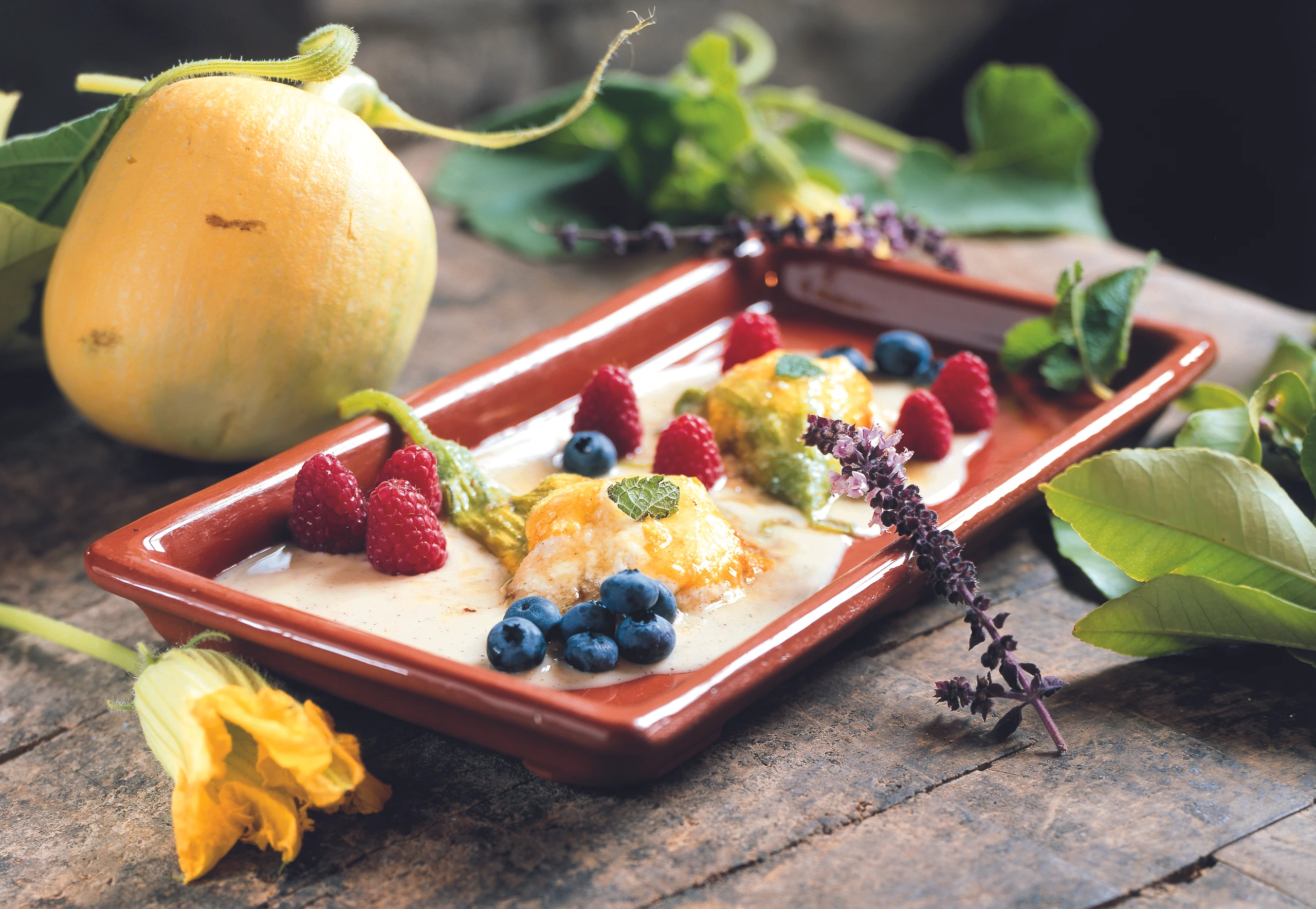 Kürbisblüten mit Vanille-Bauerntopfen gefüllt