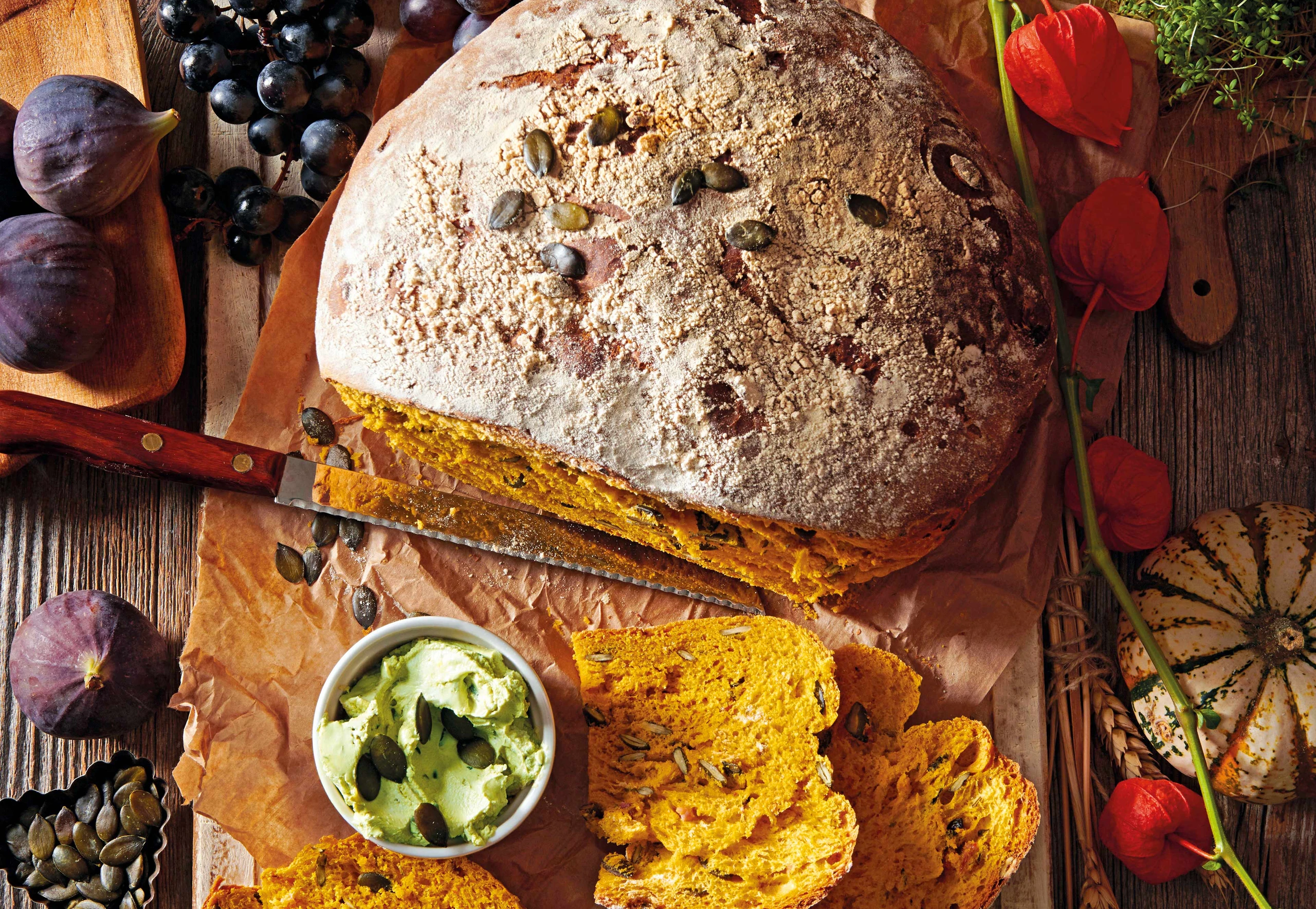 1 TL von den Kernen beiseite stellen, übrige fein hacken. Knoblauch schälen und pressen. Kerne und Knoblauch mit den restlichen Zutaten glatt rühren, mit Salz und Pfeffer würzen. Mit Kürbiskernen bestreuen.